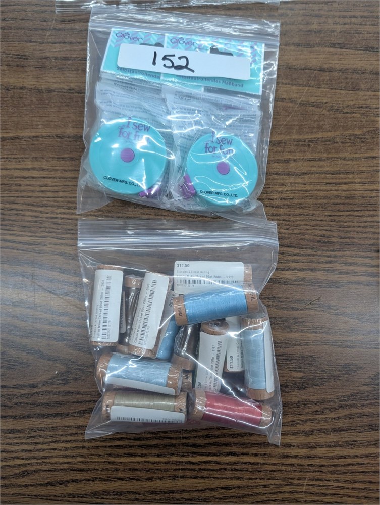 (15) Various Colored Cotton Made Thread 80wt 180M - 2930, (2) Clover Sewing Measuring Tape