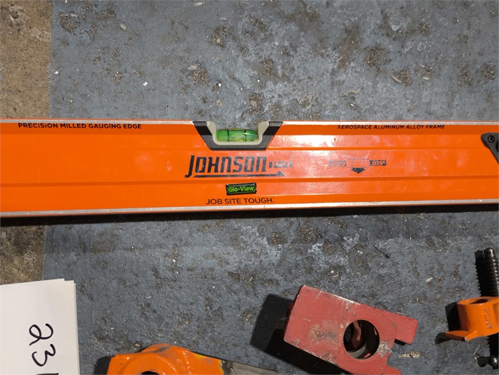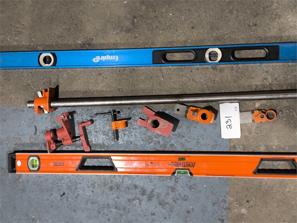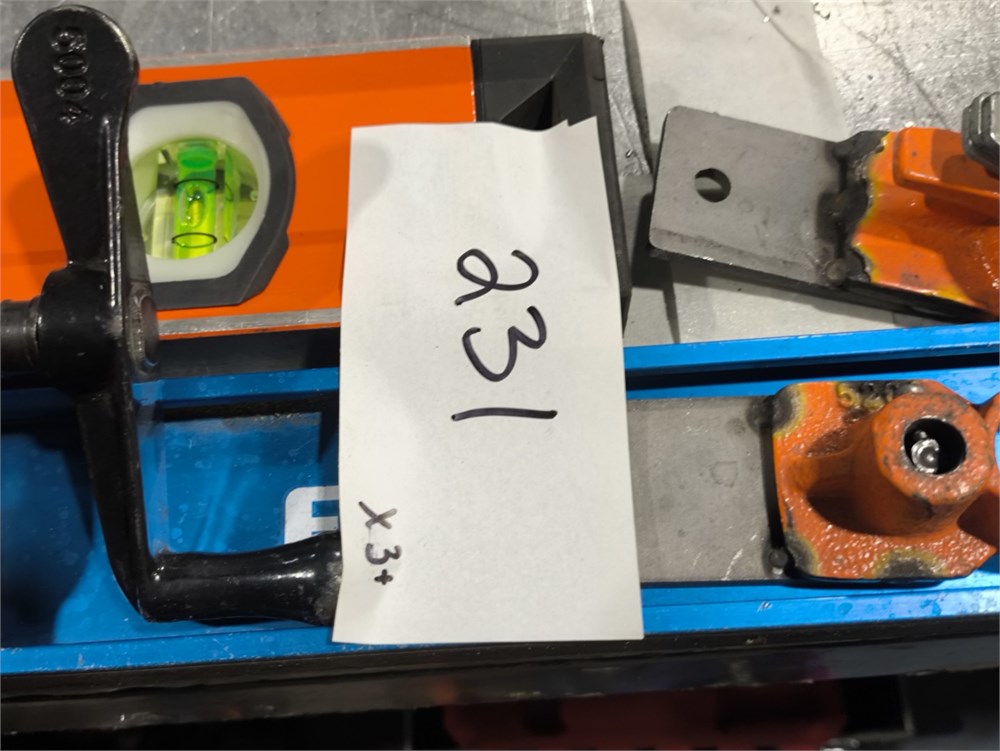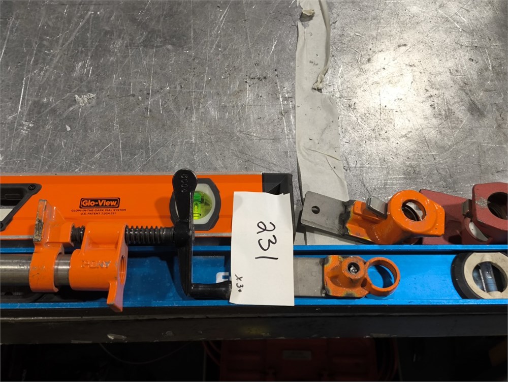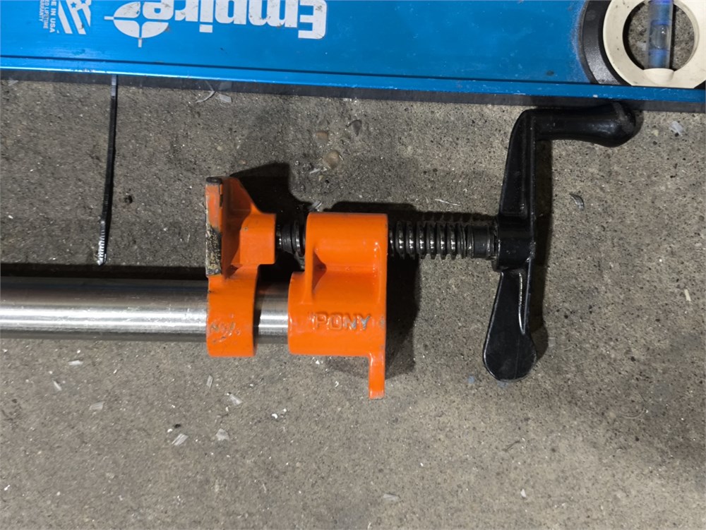 (3) Empire Level EM55.78 True Blue Magnetic I-Beam Level; Johnson Glo-View Job Site Tough aluminum box level and Pony pipe clamp fixture
