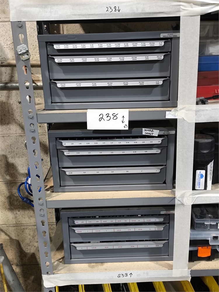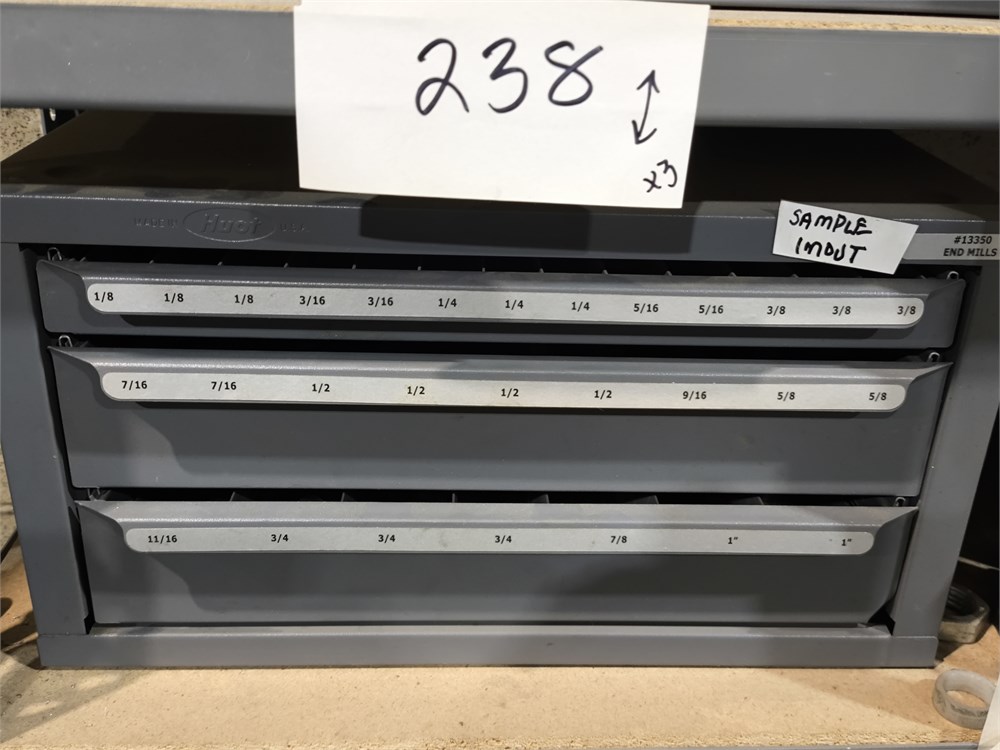 (3) Huot Three-Drawer Tap and Drill Bit Dispenser Cabinets with contains