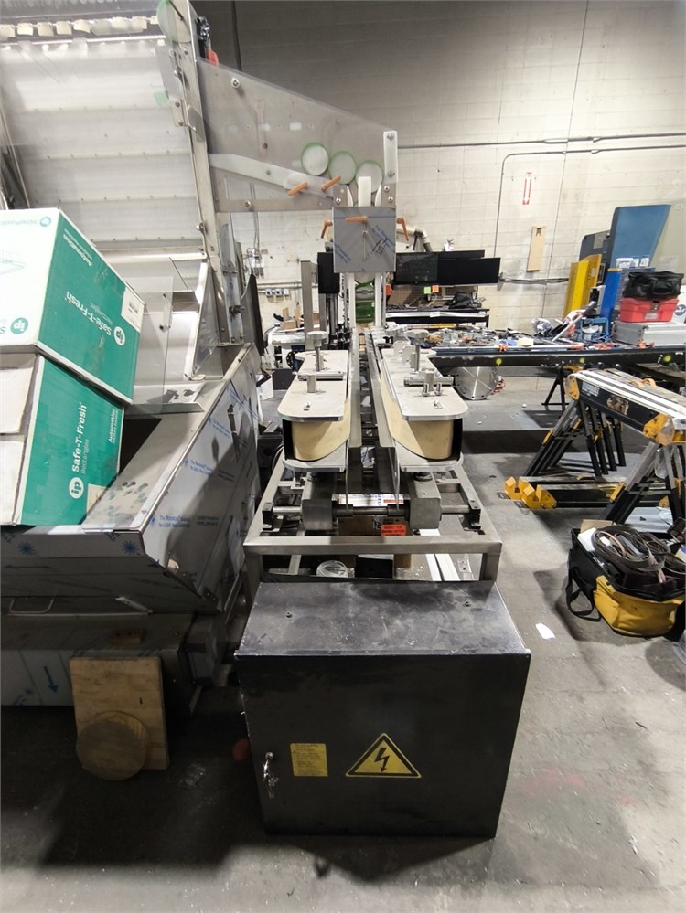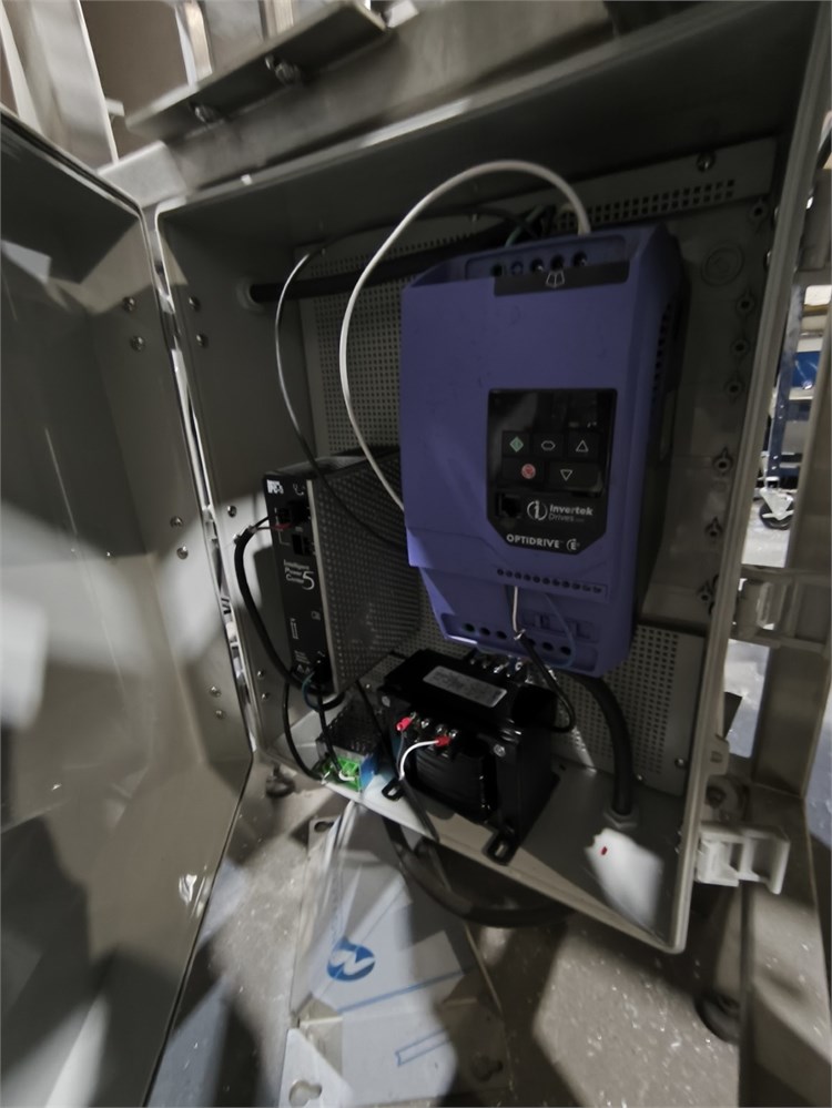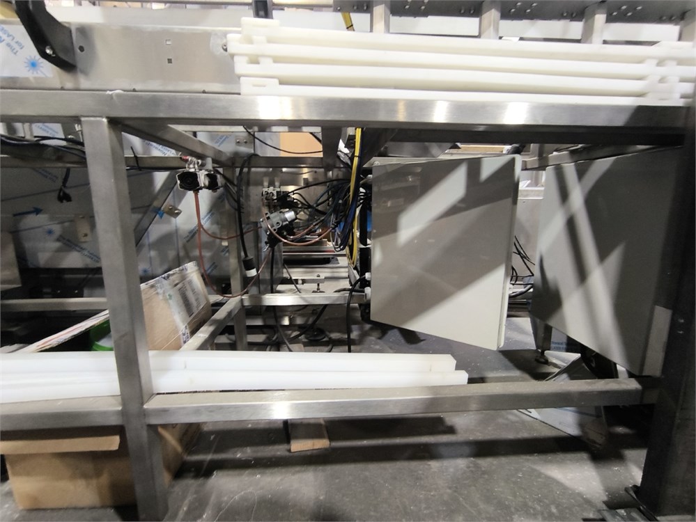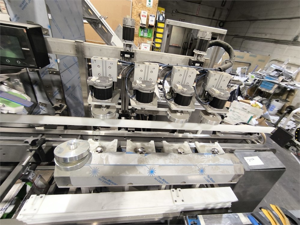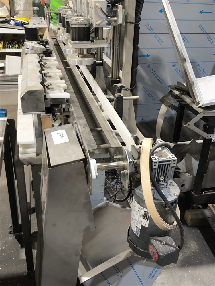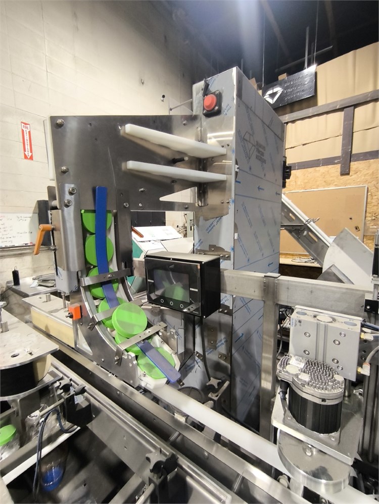 Custom Made Plastic Tub Capping Machine with auto Cap Feed, Conveyor, omron LCD Control Panel, (4) Unit capacity, Invertek Driver Optidrive System. Unit is not Complete and could not be tested.