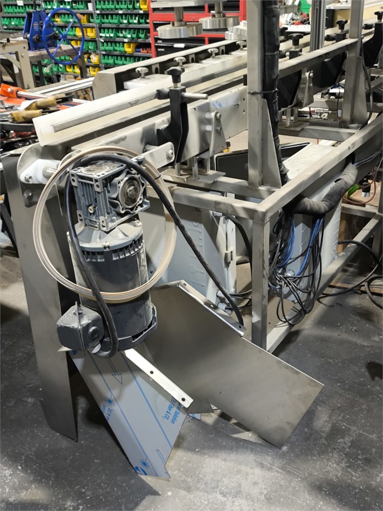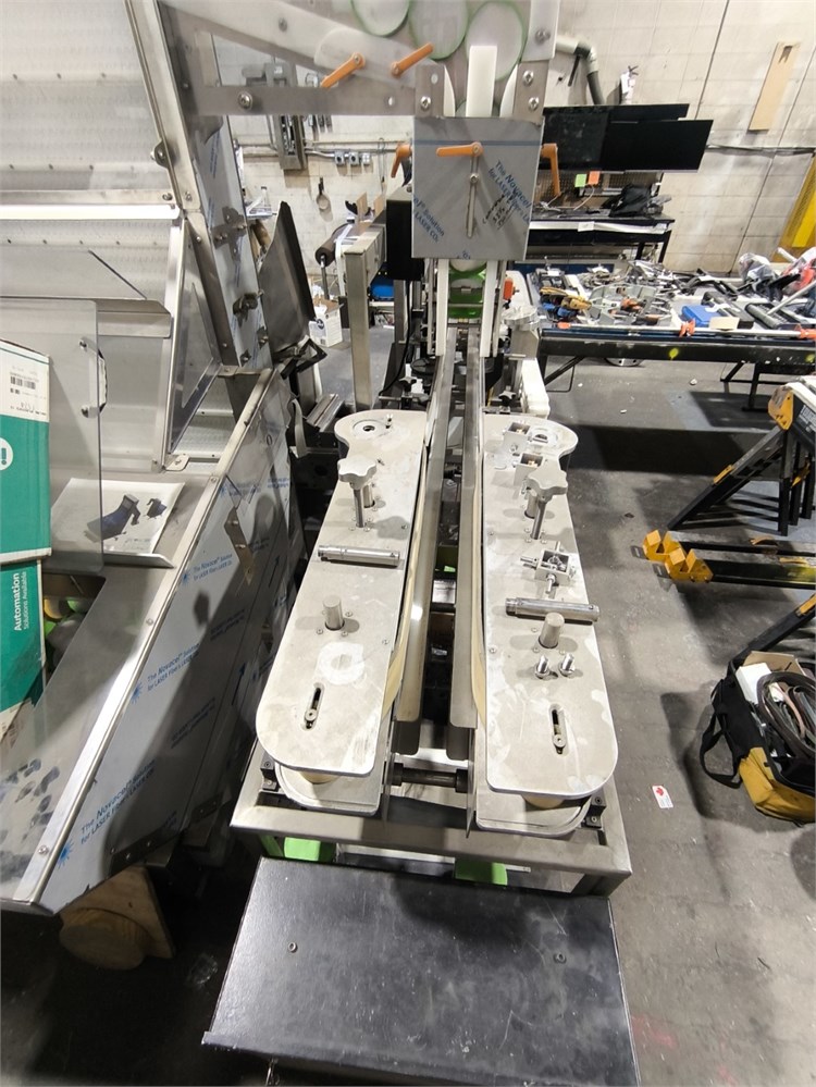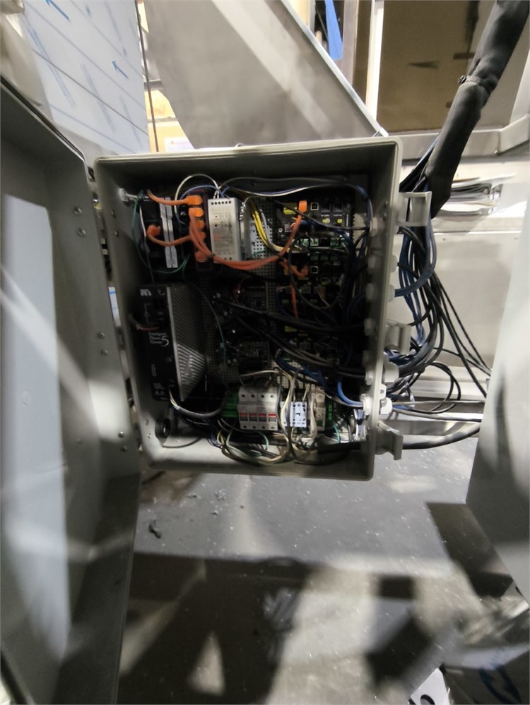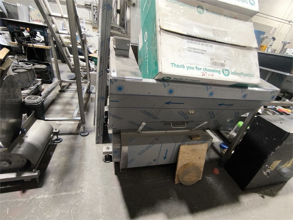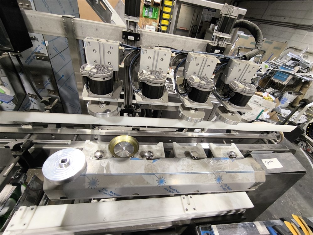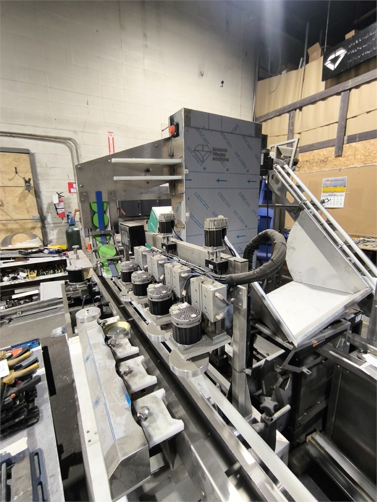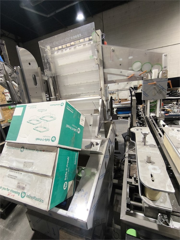 Custom Made Plastic Tub Capping Machine with auto Cap Feed, Conveyor, omron LCD Control Panel, (4) Unit capacity, Invertek Driver Optidrive System. Unit is not Complete and could not be tested.