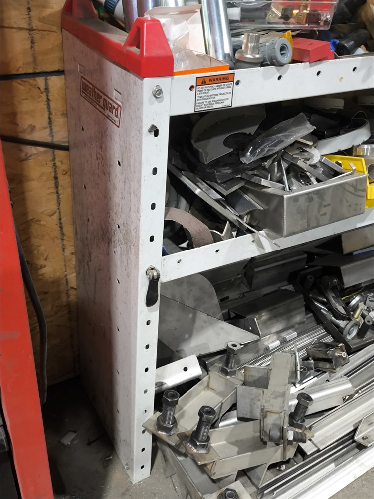 Weather Guard Storage Unit filled with a variety of scrap materials and industrial components.
