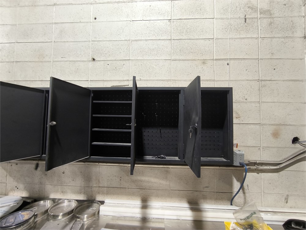 (2) wall-mounted metal garage tool cabinet. No Keys Included