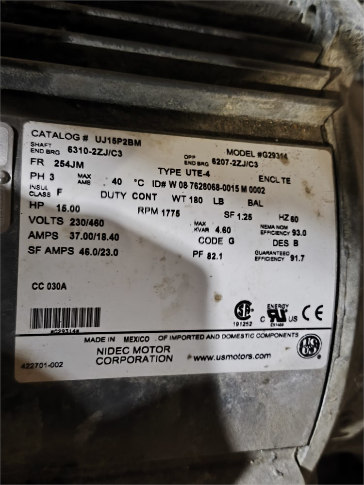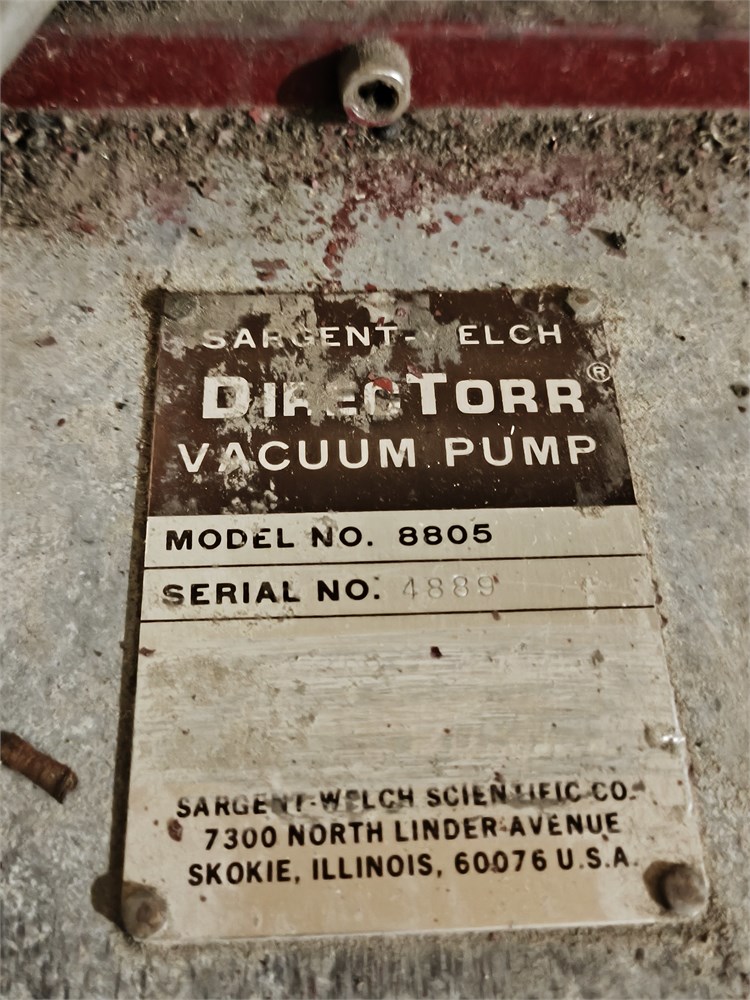 (3) Industrial Electric Motors: Baldor-Reliance JMM37114T; U.S. MOTORS (Nidec Motor Corporation) Unimount� 3-phase AC motor, catalog number UJ15P2BM; Sargent-Welch DirecTorr Vacuum Pump, Model 8805.