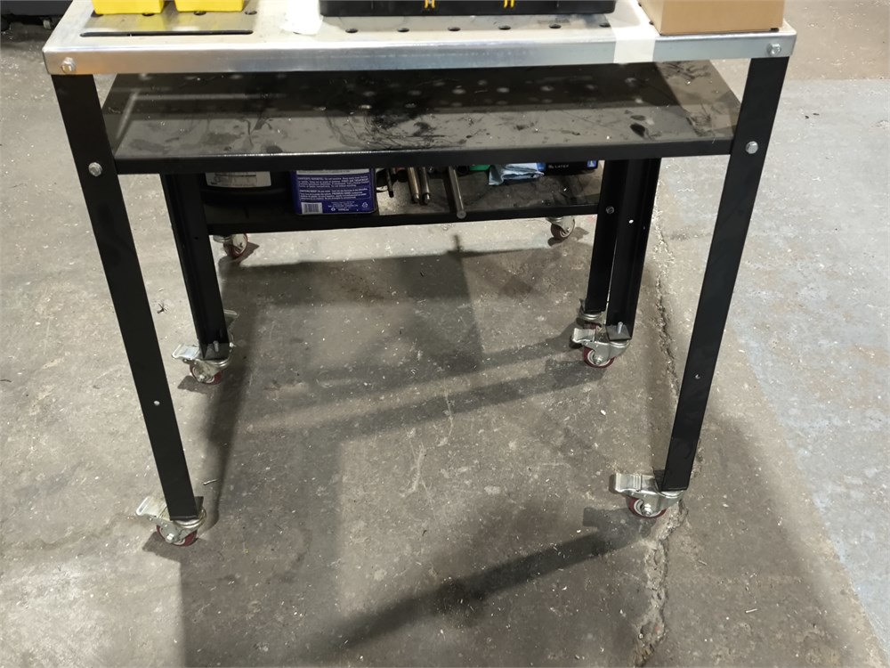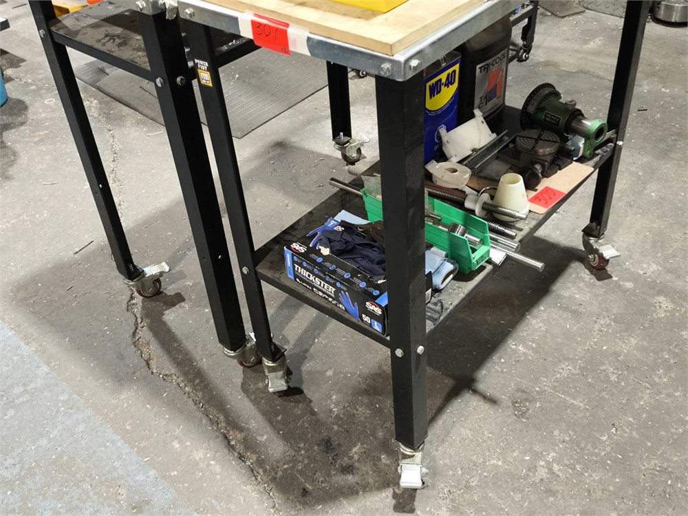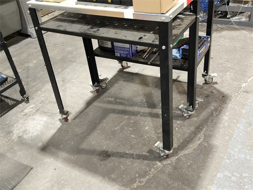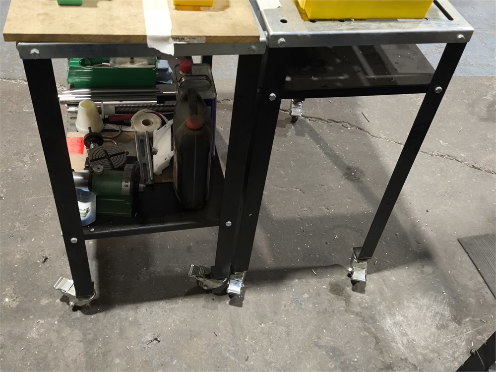(2) Wheeled Work Tables with Aluminum Frame and Table Top, Contents Not Included
