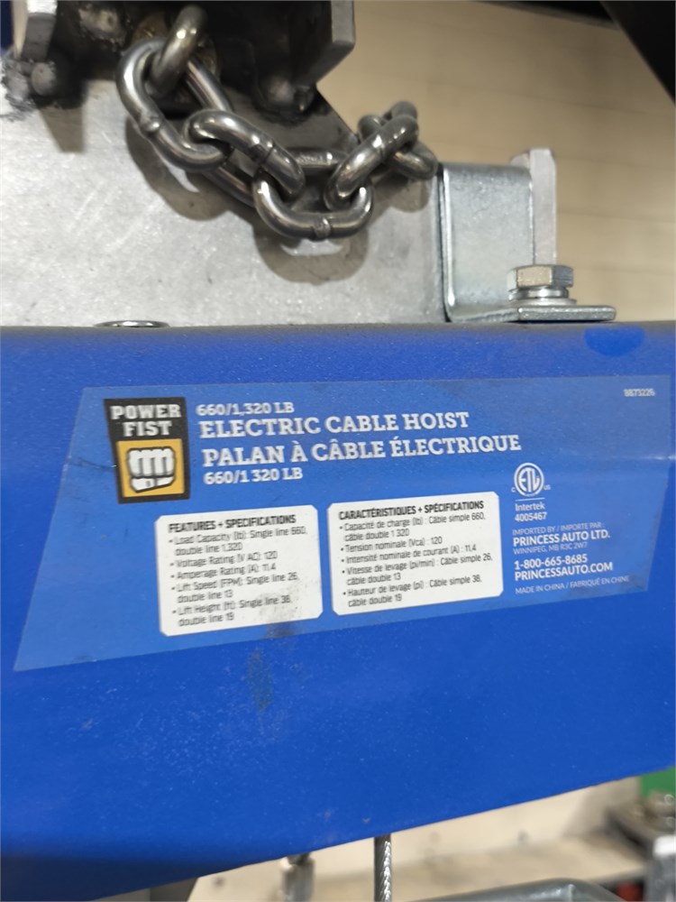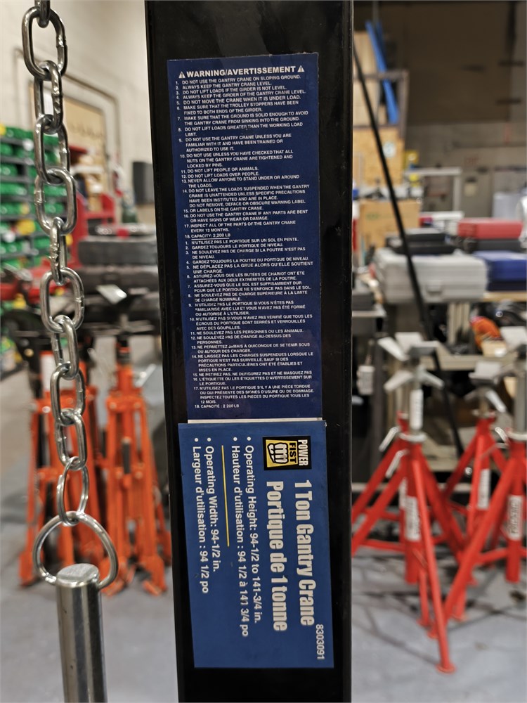 Power Fist 1 Ton Gantry Crane, Power Fist Manual Trolley 1 Ton Capacity, Powerfist Electric Cable Hoist 1,320Lb Capacity