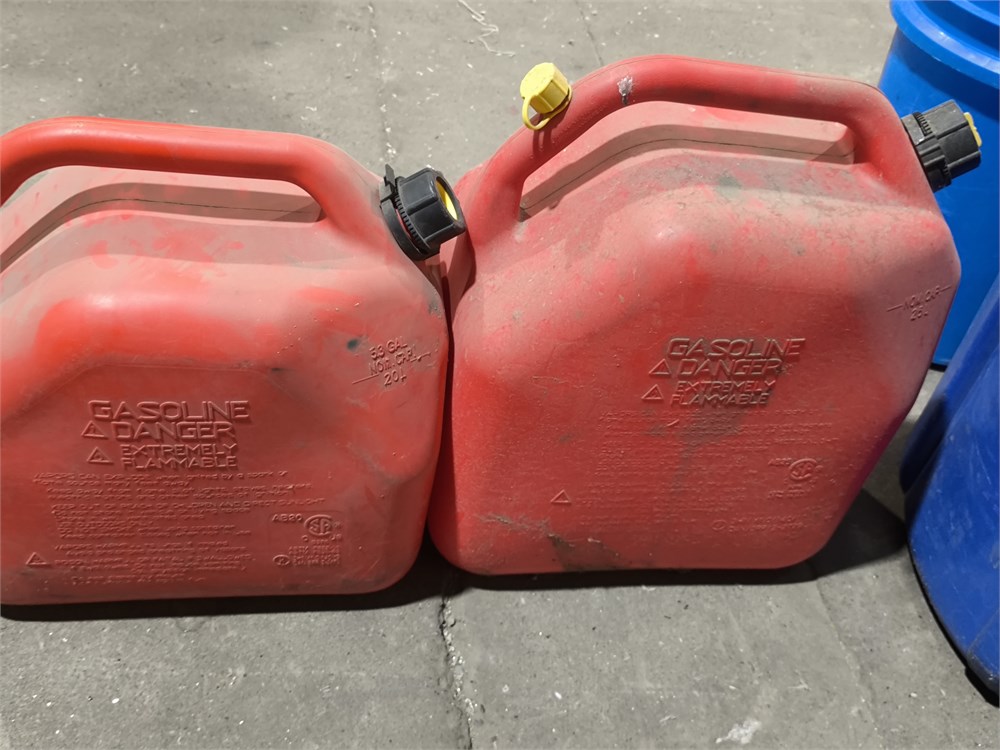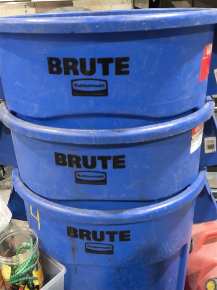 (3) Brute 44 Gallon Garbage Bin, 20Litres Solvent, (2) Jerry Cans,