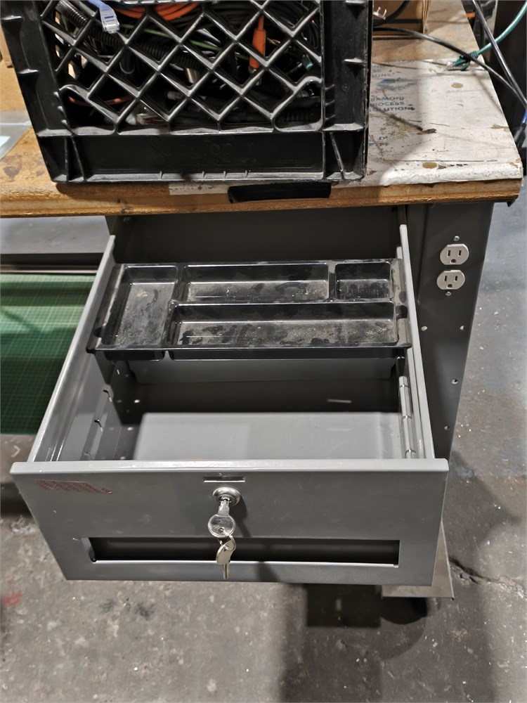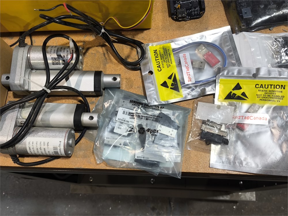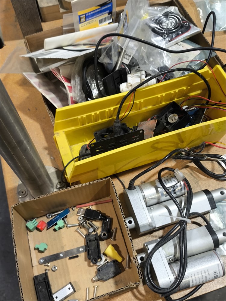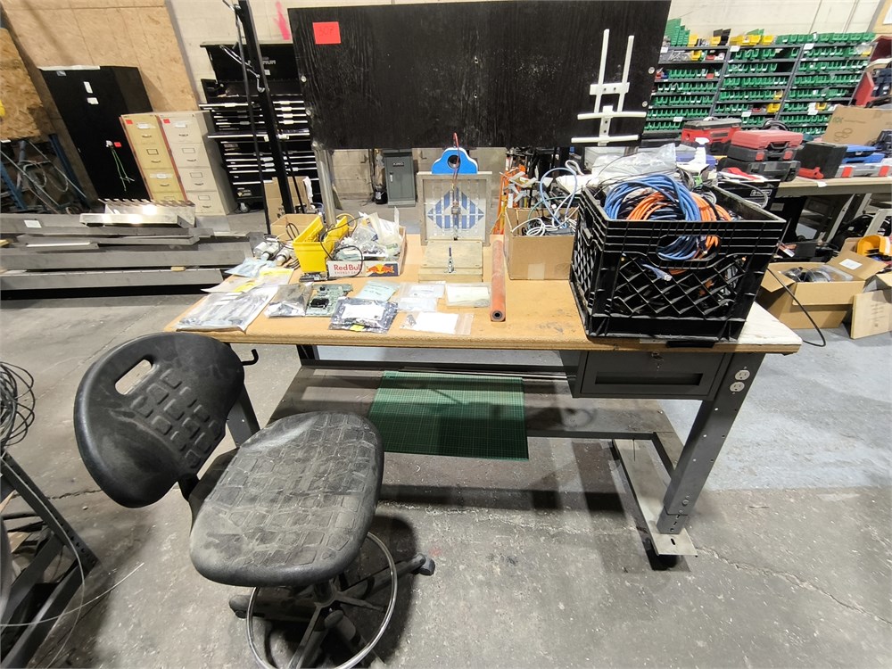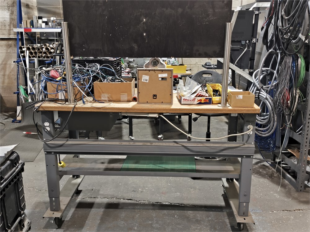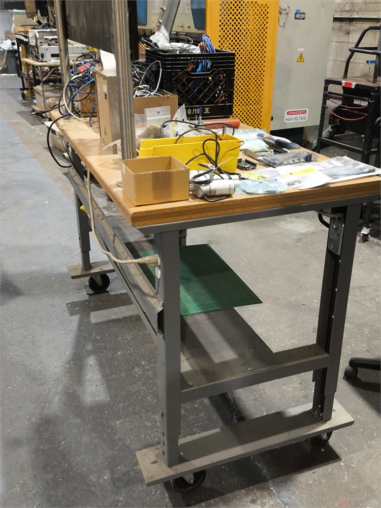 Wheeled Work Table, Wheeled Work Stool, Electric Actuators, Electrical Cables and table contents