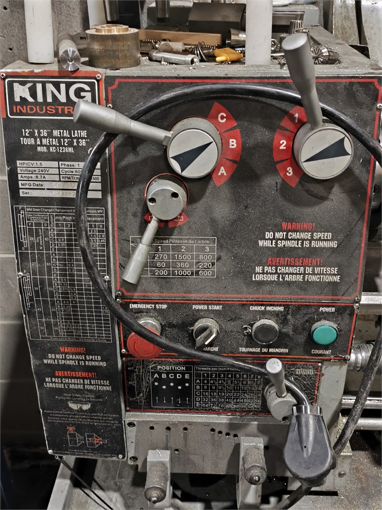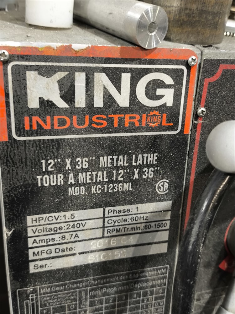 12" x 36" Gearhead Metal Lathe King Industrial Model: KC-1236ML. Accessories included and See Pictures. Tested