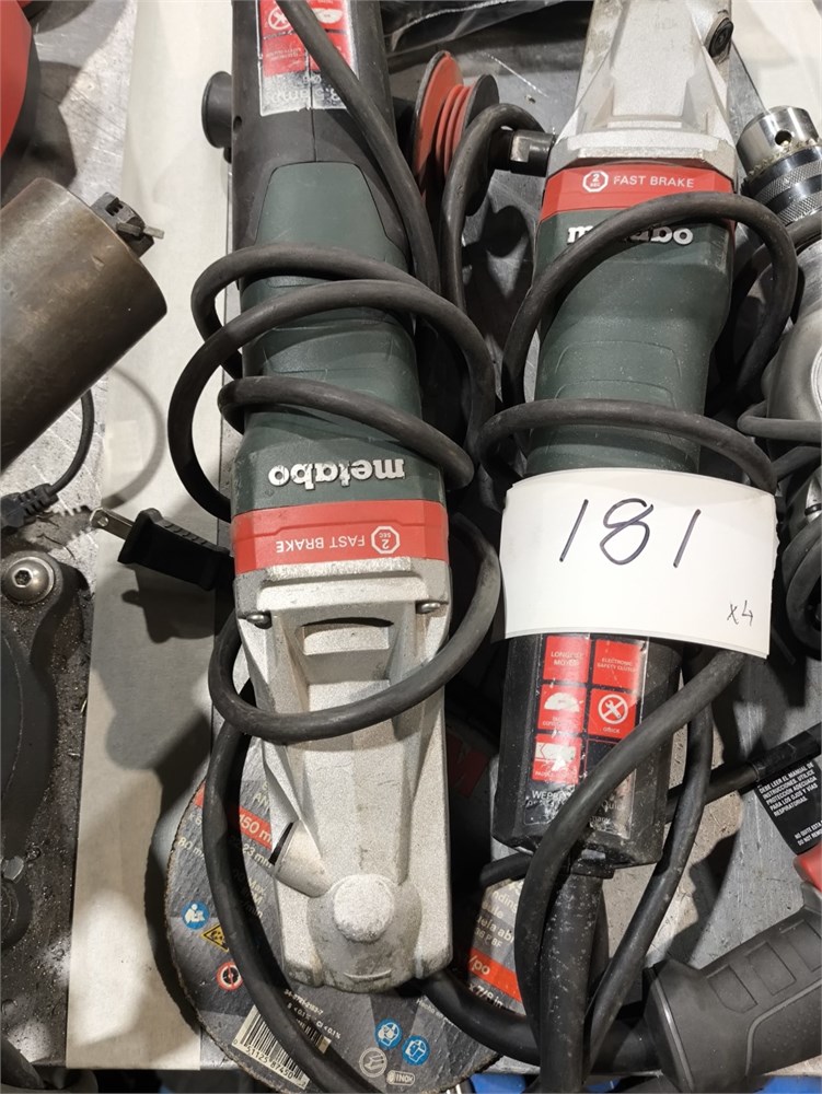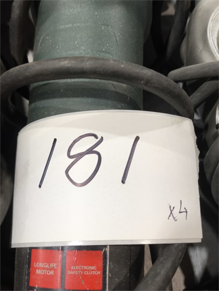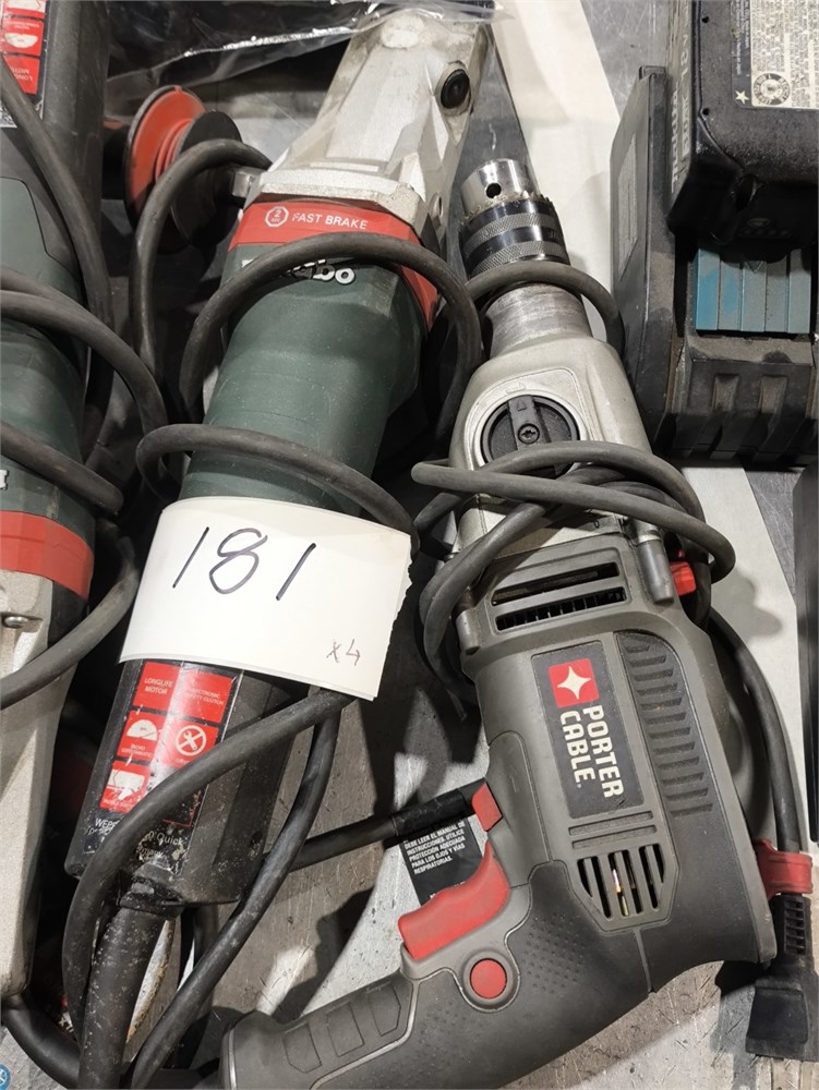(2) Metabo Fast Brake Grinder; (1) Hammer Drill Porter Cable; (1) Metabo Dust Bag