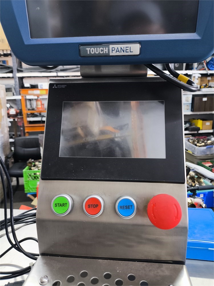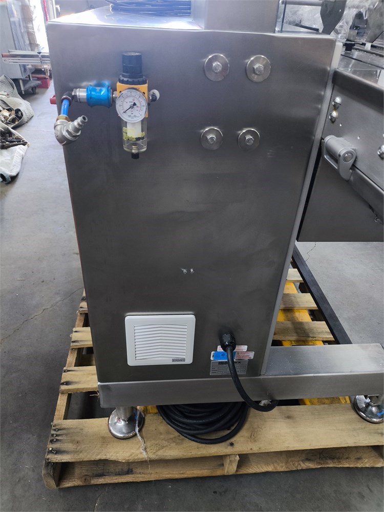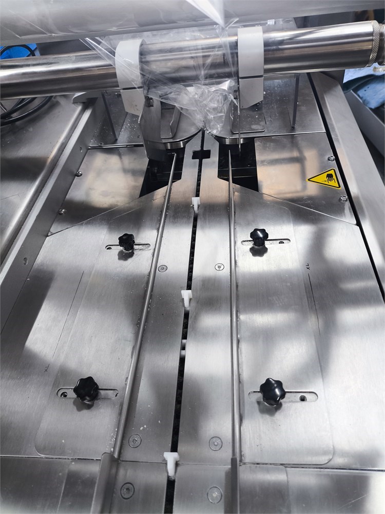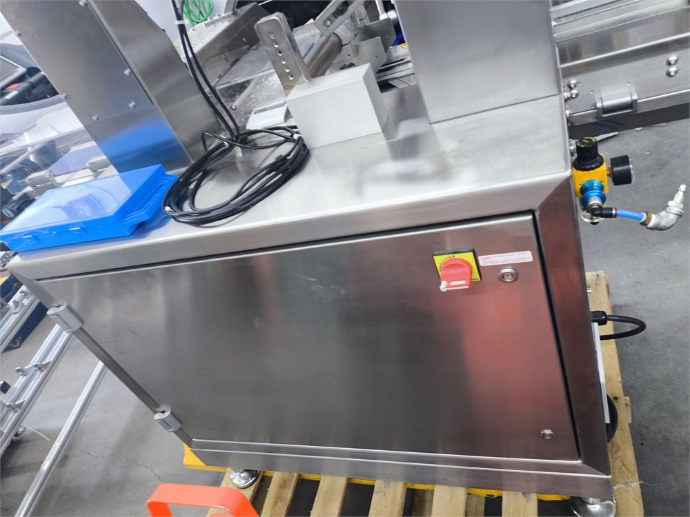 This machine comes standard with stainless steel frame construction, user-friendly color touchscreen, automatic open/close rotary fin wheel assembly, rotary seal jaws with jam detecting logic and the ability to preprogram and store product settings.