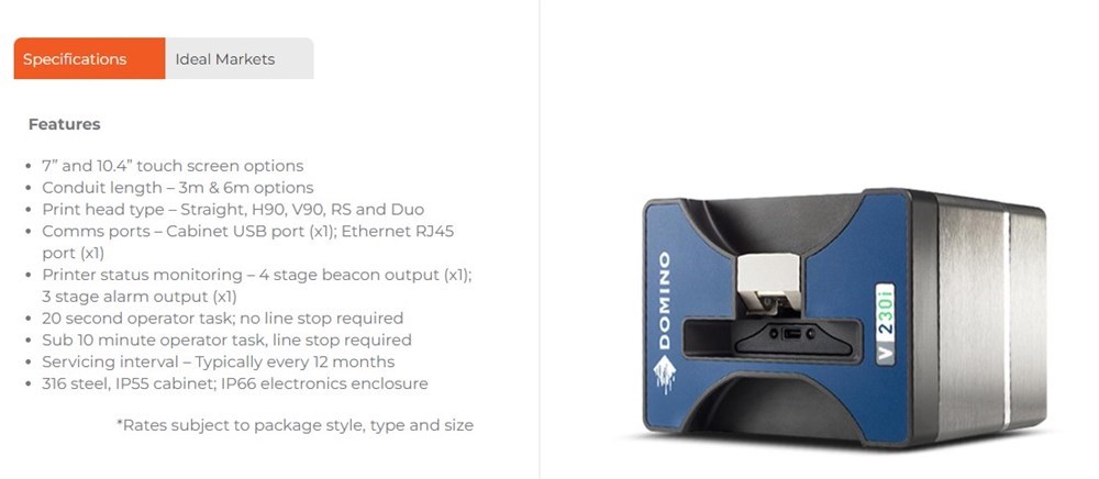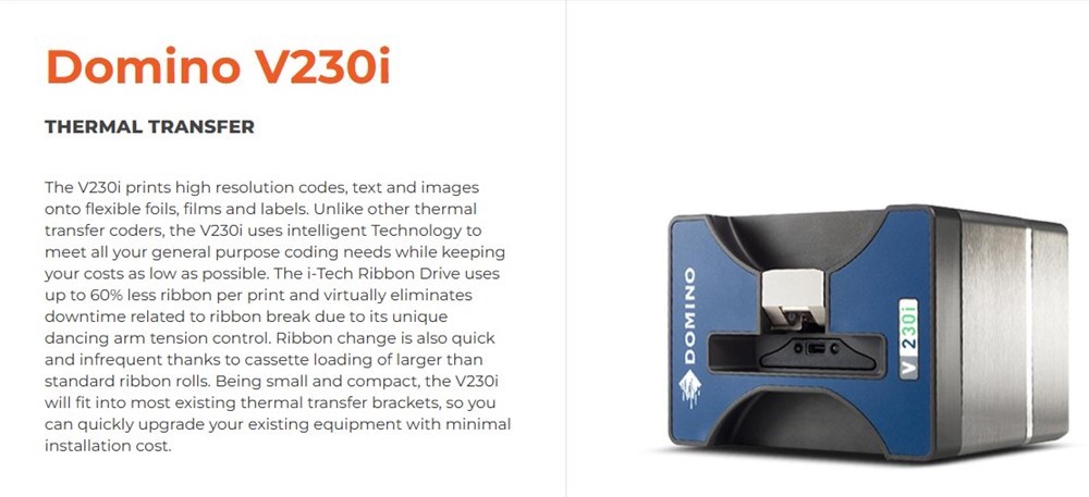 Weighpack Sleek Wrapper 45 with Domino V230i Thermal Transfer (The V230i prints high resolution codes, text and images into flexible foils, films and labels)