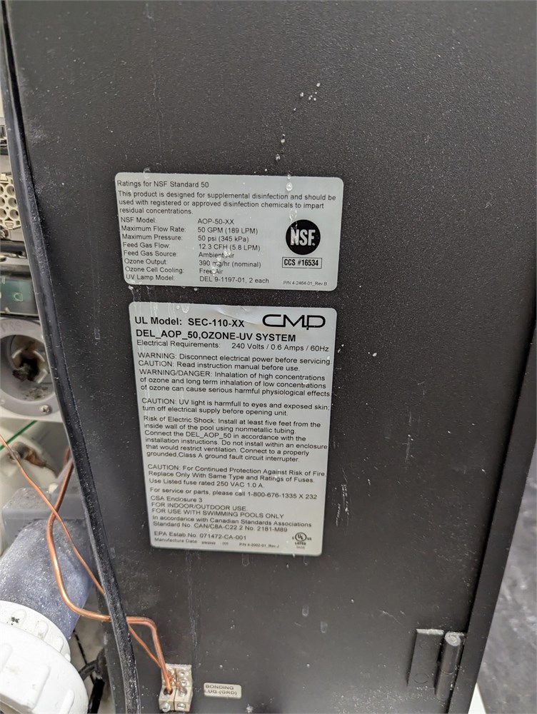 Del AOP 50 Advanced oxidation Process, Disinfection and pump, Model: SEC-110-XX