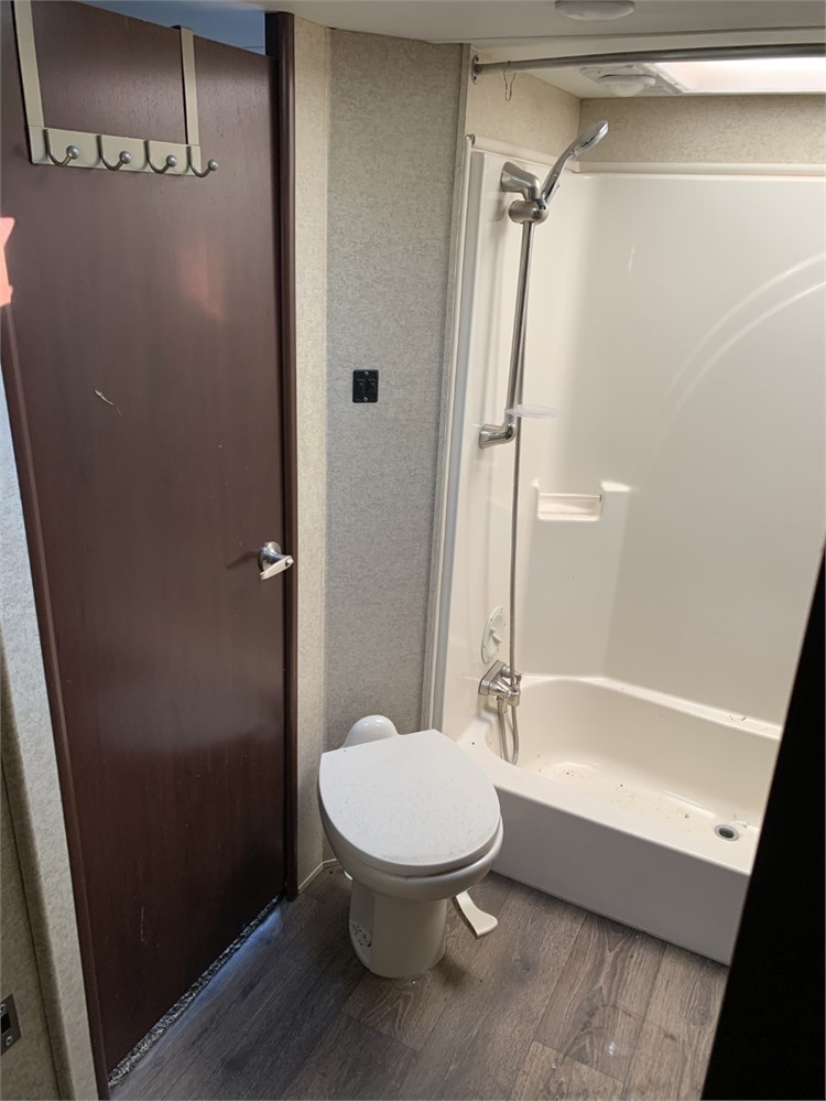 There is wear on the toy hauler area couch/bed.