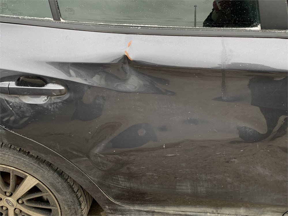 There is a dent on the rear passenger door - Rust has developed