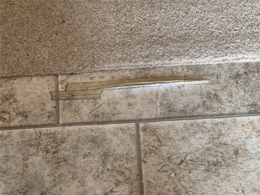 Some minor cracks in the linoleum floor