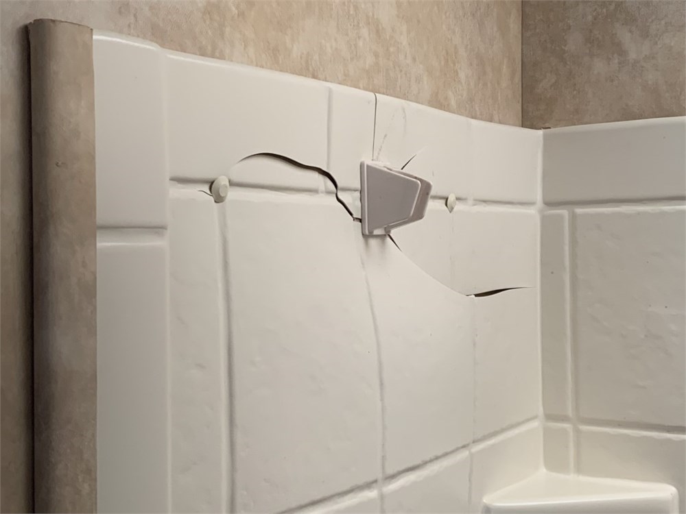 There are cracks in the shower shell by the shower head clip