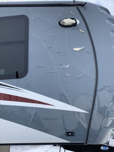 There is a large amount of water damage on the door-side near the nose cone - The paint has begun to flake and it is soft to touch on both the interior and exterior