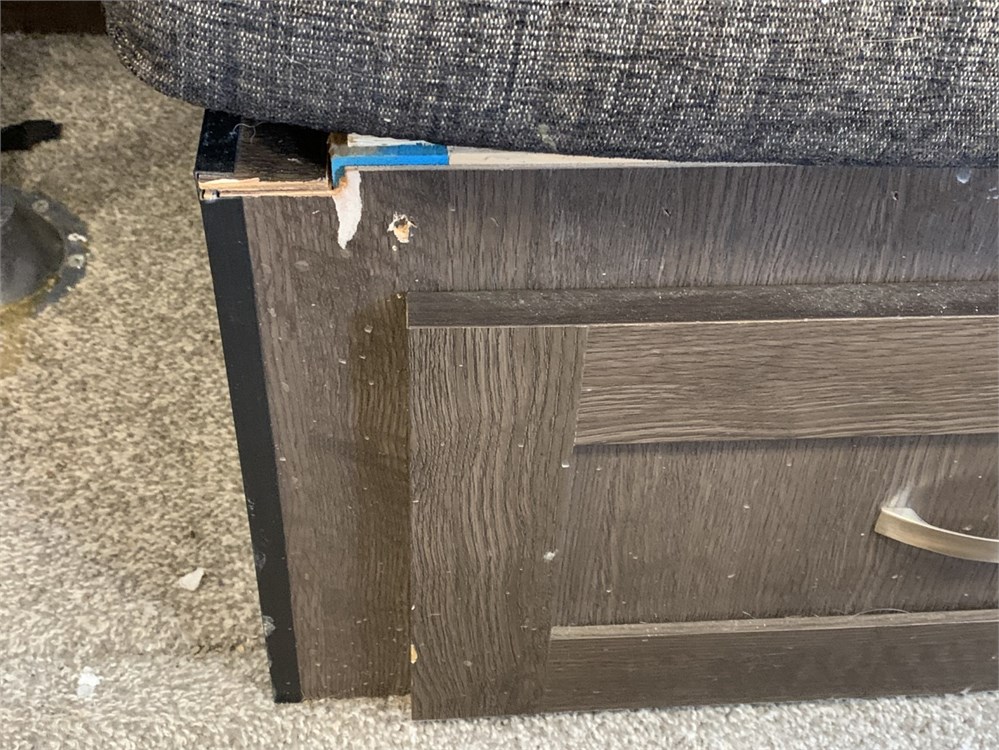 Some wear on the leather trim on the kitchenette