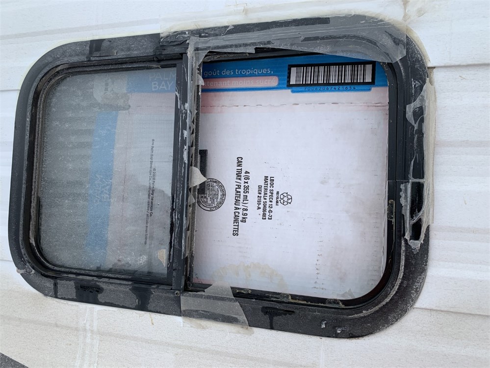 The window to the kitchen by the door is gone and needs to be replaced