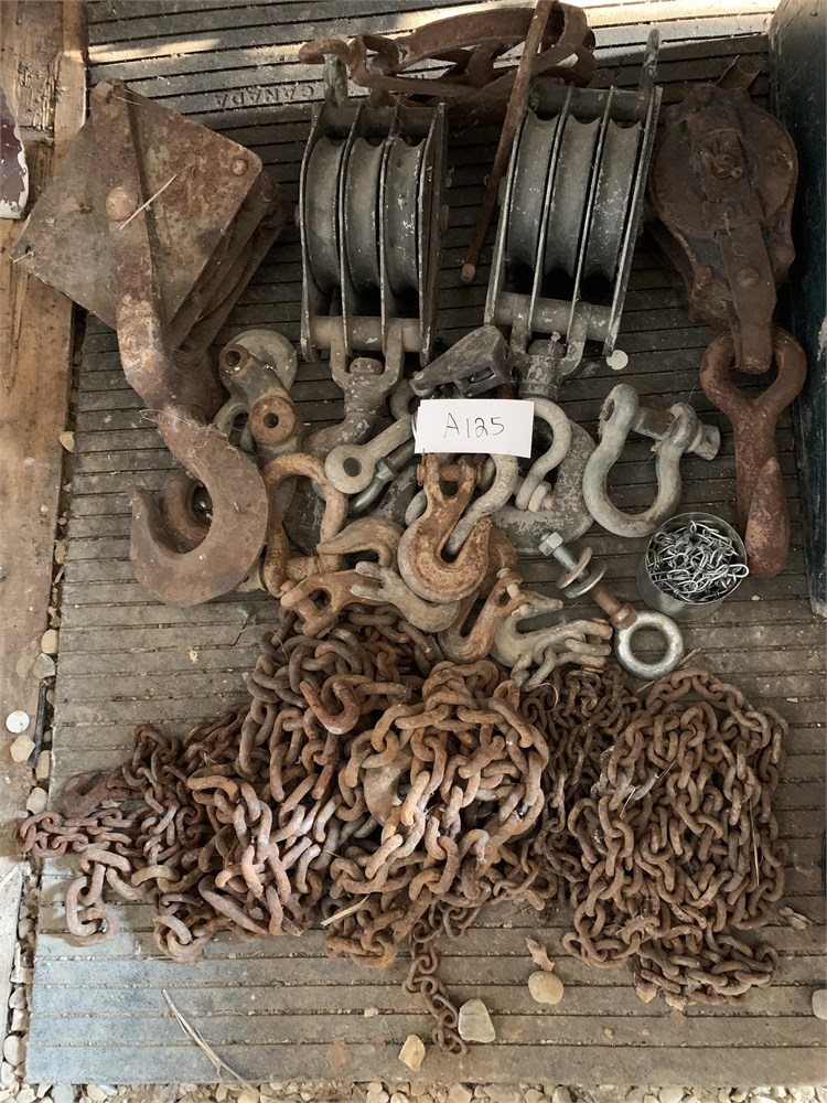 Lot 125 - Pulleys, Chains, Clevases and Chain Hooks