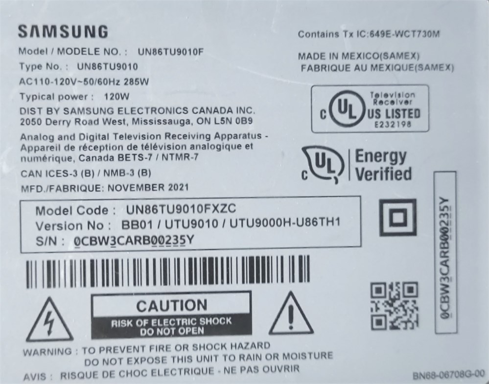 Samsung TV Model:UN86YU9010FXZC with remote,legs,HDMI cable and TV Stand