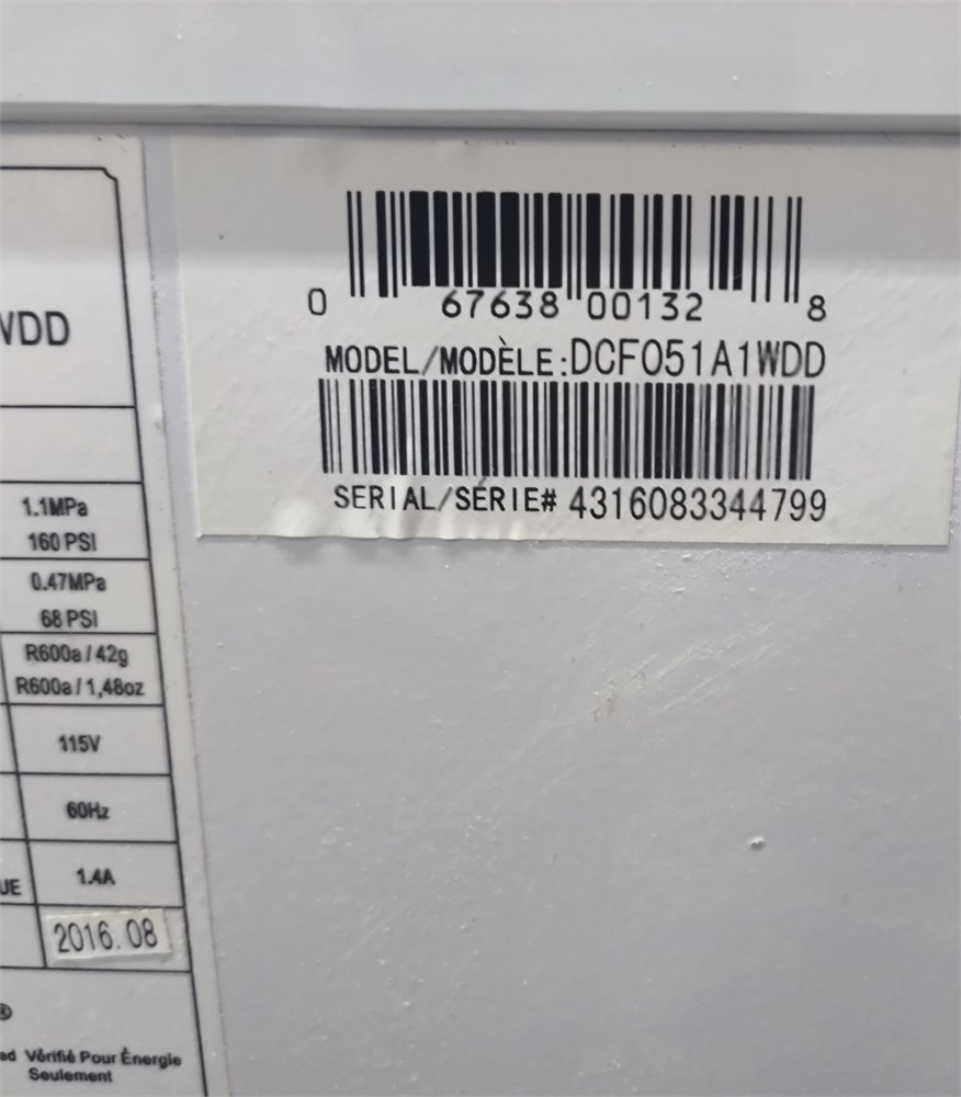 Model: dcf05181wdd 5.1 cu Deep Freezer