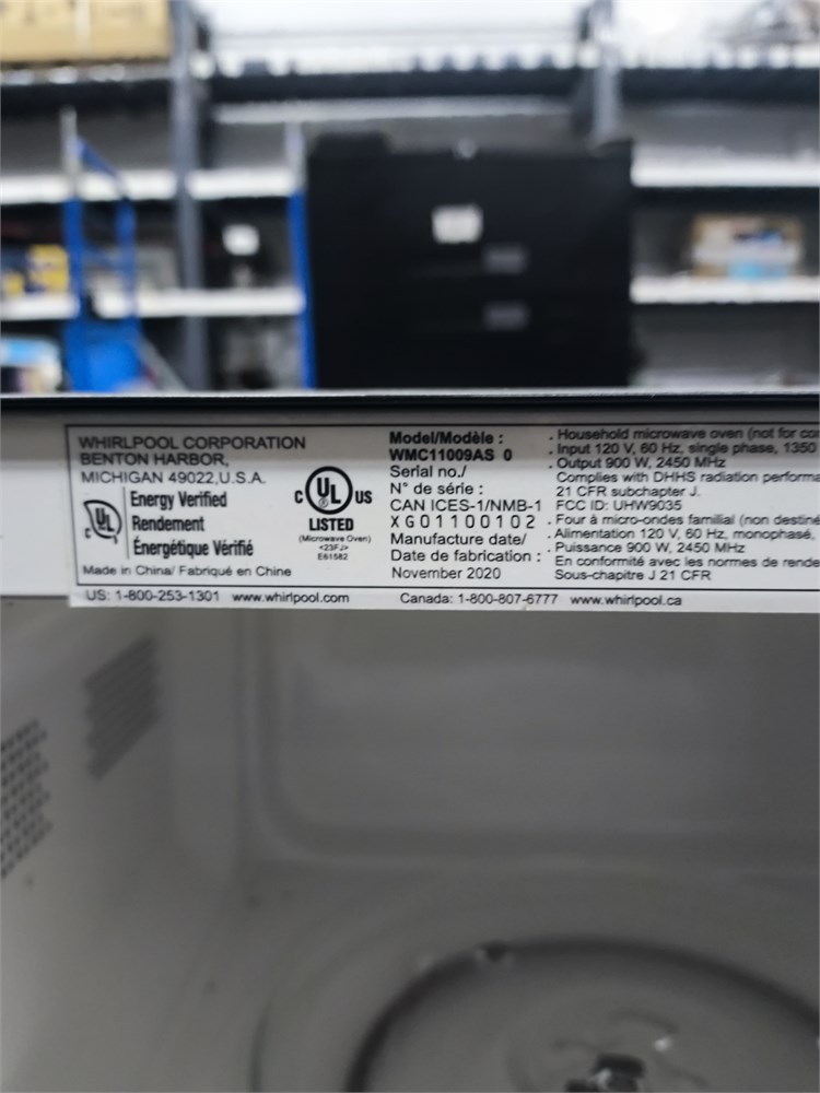 Whirlpool Domestic Microwave Model: WMC11009ASA 0