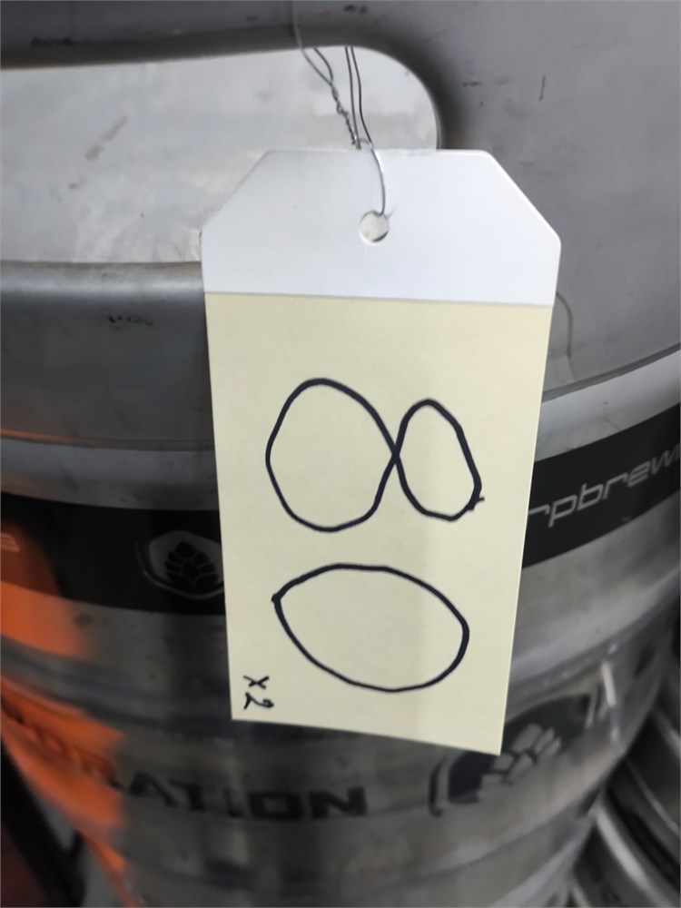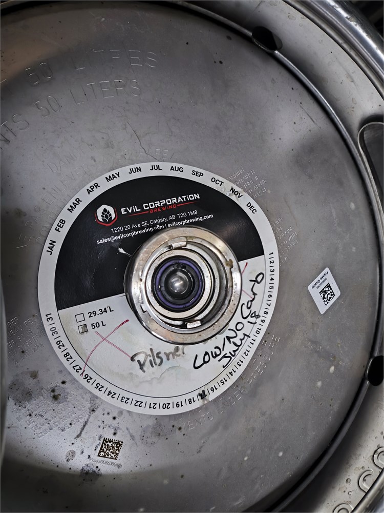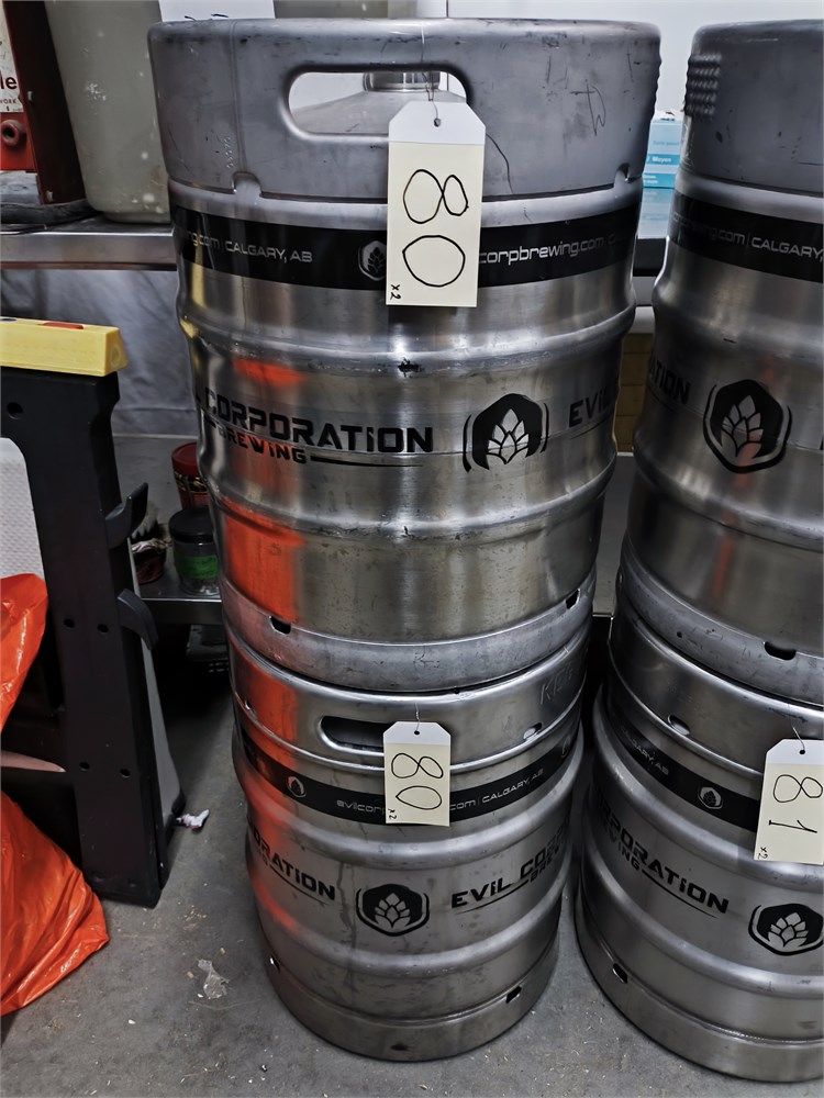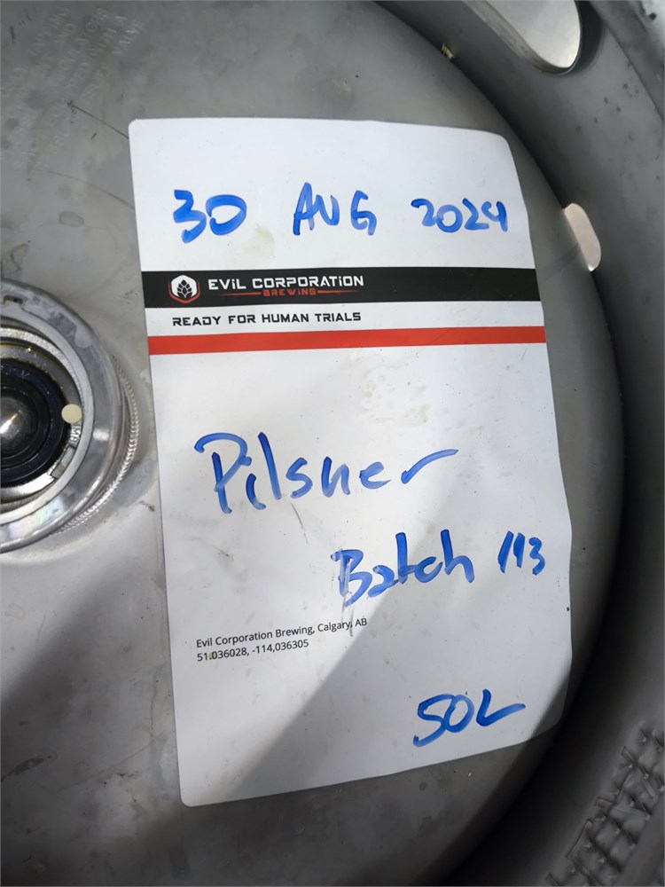 (2) 50L Kegs with Contents labeled as "Evil Corporation Brewing Pilsner" not full, see tag for more details