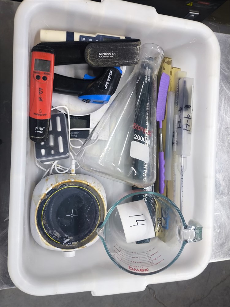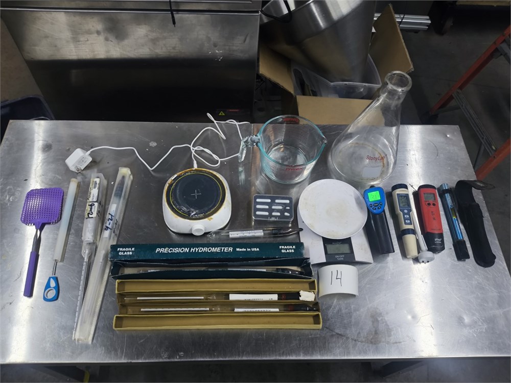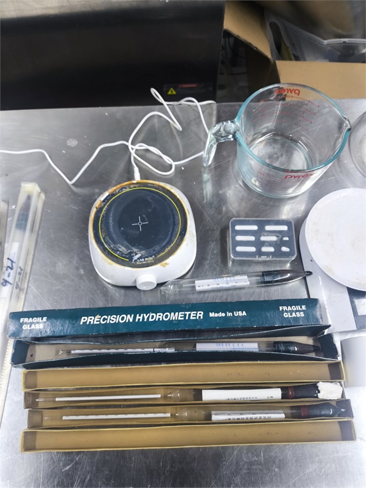 (1) Precision Hydrometer, (5) Thermometers, (1) Lab Fish Magnetic Stirrer, (1) Accu Chef Scale