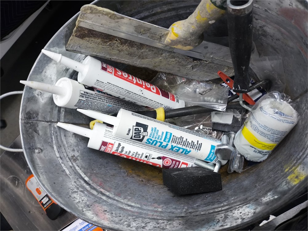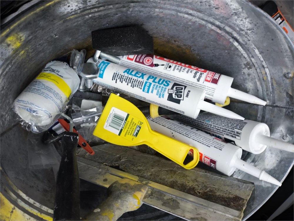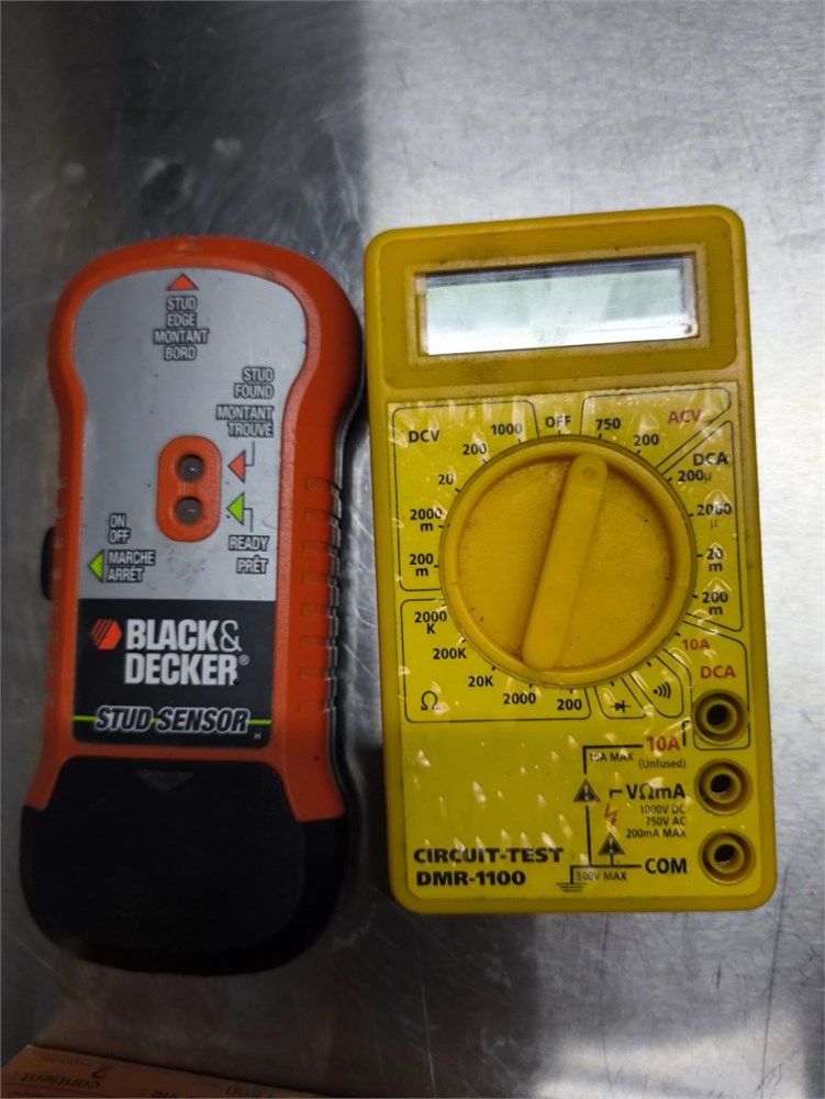 (1) Stud Sensor, Circuit tester, Sand Paper, Caulking, and various Pictured items