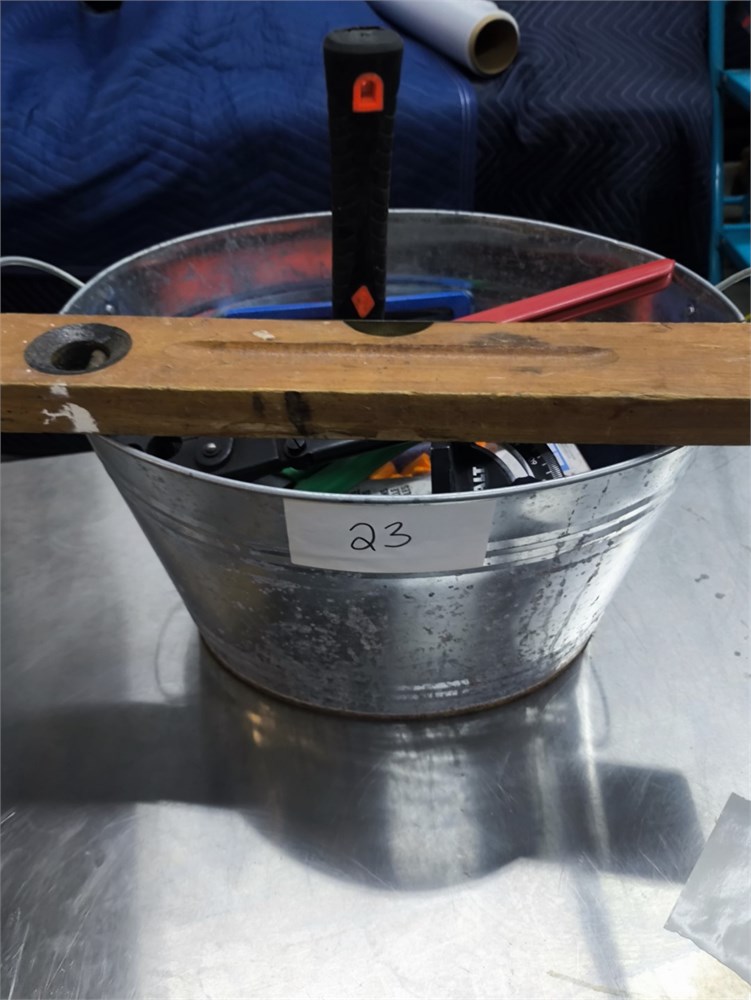 Hammer, Pipe Crimper, Electrical Crimper, Level, and All Pictured Items