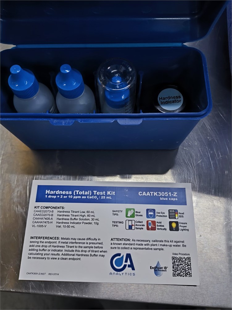 Coleman Chest Cooler with Aqua Phoenix Hardness Test Kit, Aqua Phoenix Nitrite Test Kit, Eco Lab Caustic Test Kit, Eco Labs Oxidizer Test Kit, Hydrion PH Test Kits