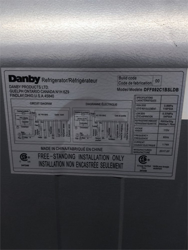 Danby Fridger Freezer Model:DFF092C1BSLDB