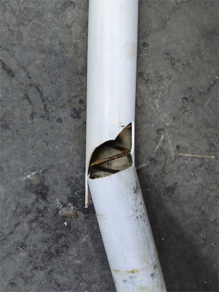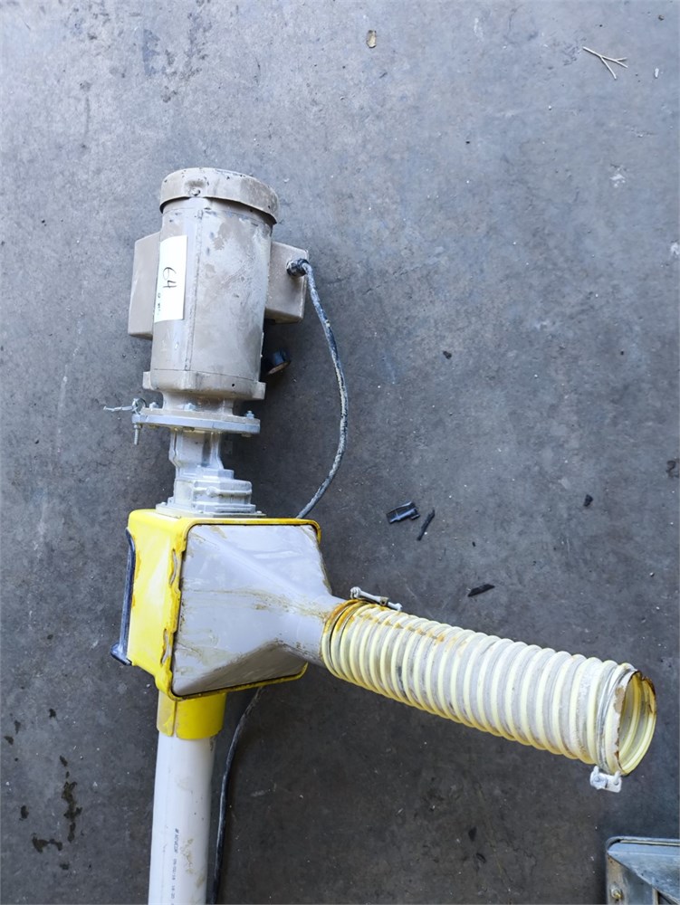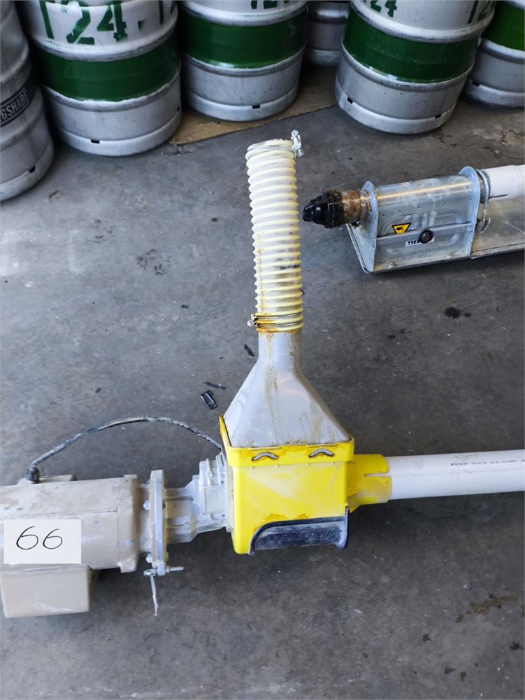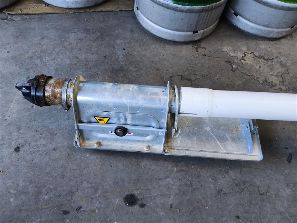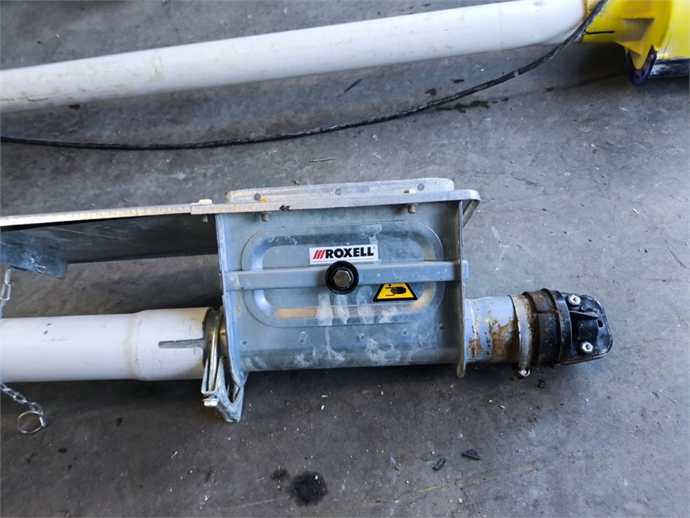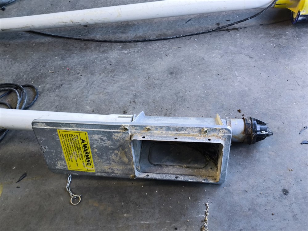 Flexi pipe Auger, Roughly 40' Pipe. Roxell Catcher, Baldor Farm Duty .75HP Motor, Varvel Gear Box. The PVC piping was cut for transport.