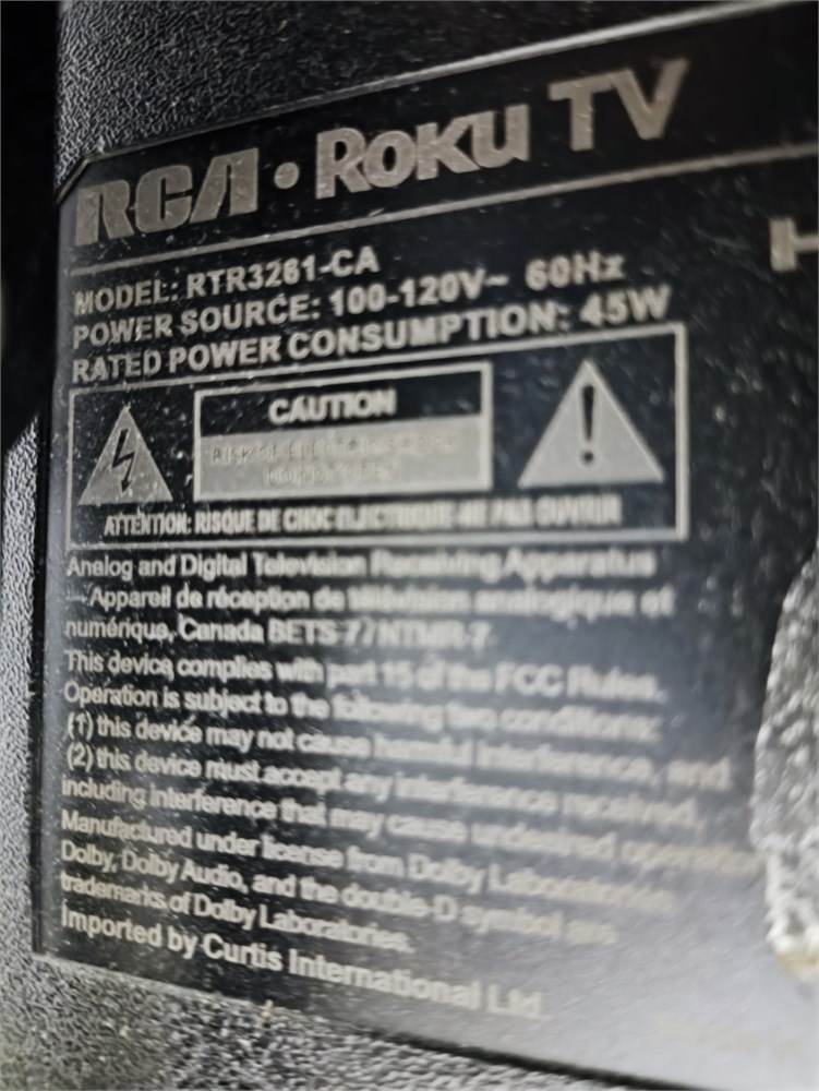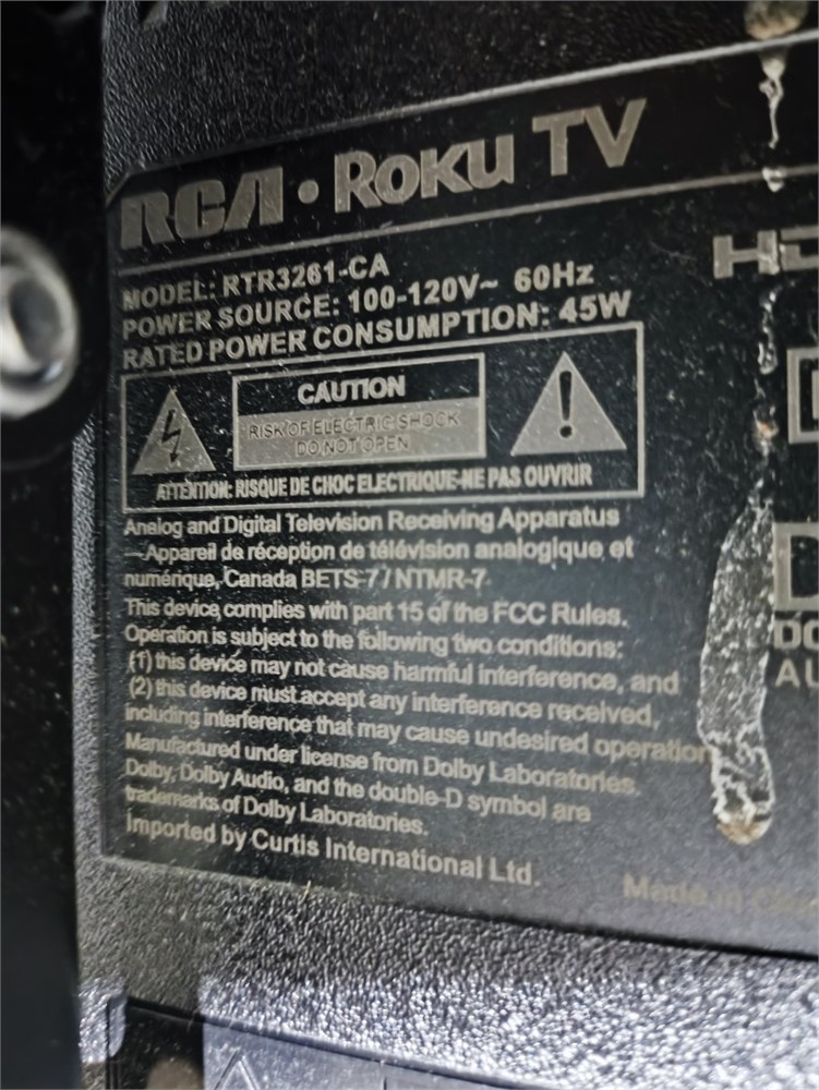 RCA Roku Television Model: RTR3261-CA, With Remote and wall mount