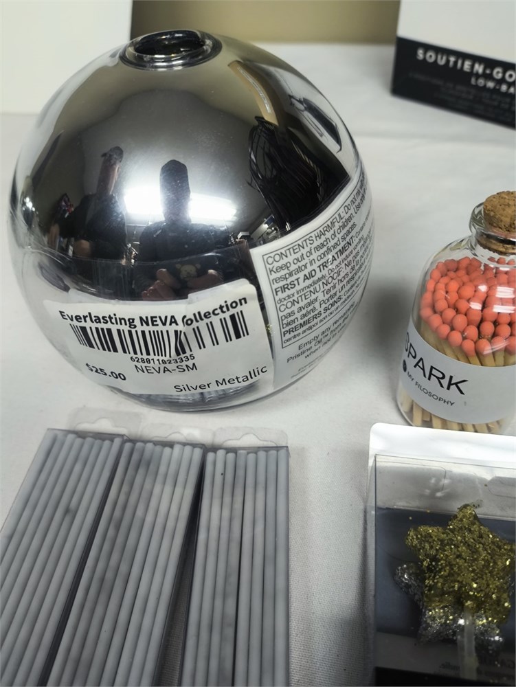 (12) Candles, Neva Glass Vase, Love Branded Matches
