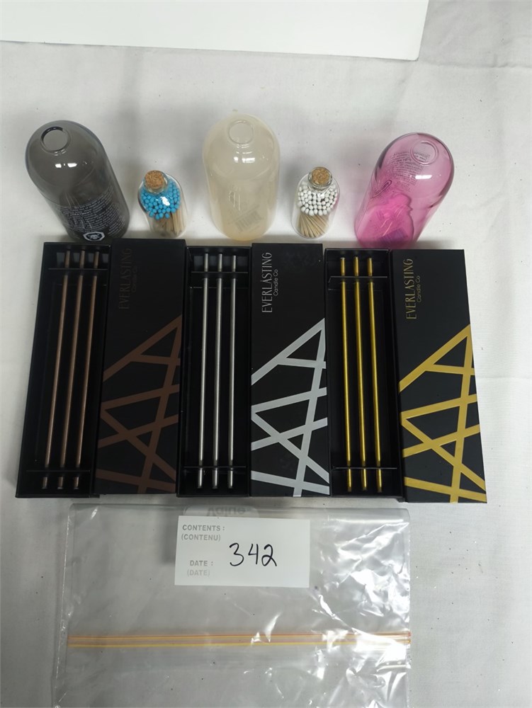 (3) Packages of 3 Everlasting Candles Steel Oil Candle, (3) Prestine Oil Vase