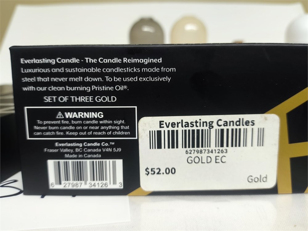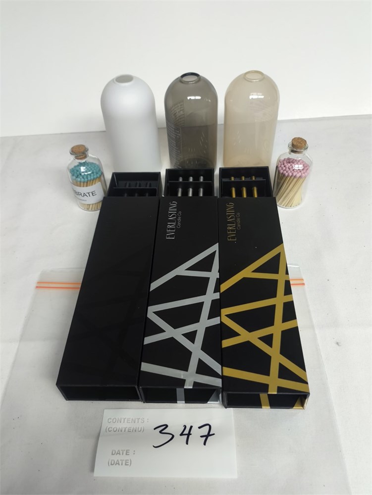 (3) Packages of 3 Everlasting Candles Steel Oil Candle, (3) Prestine Oil Vase