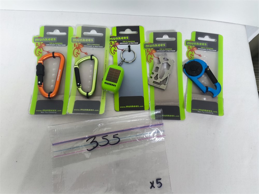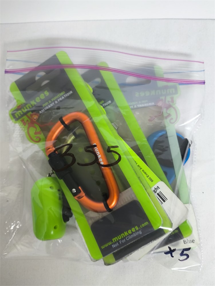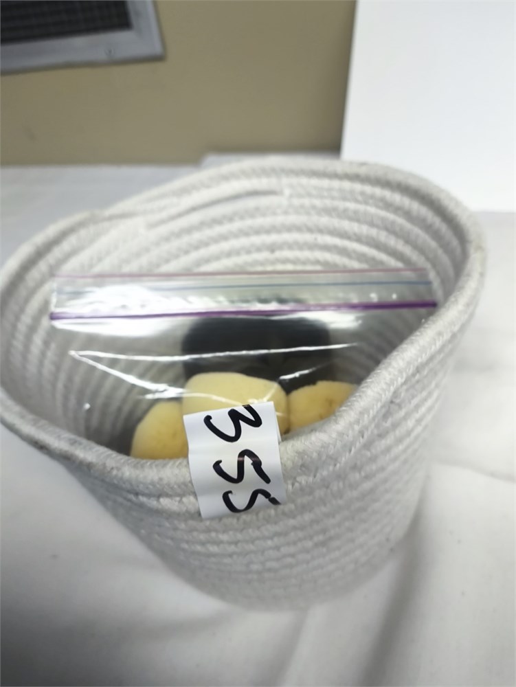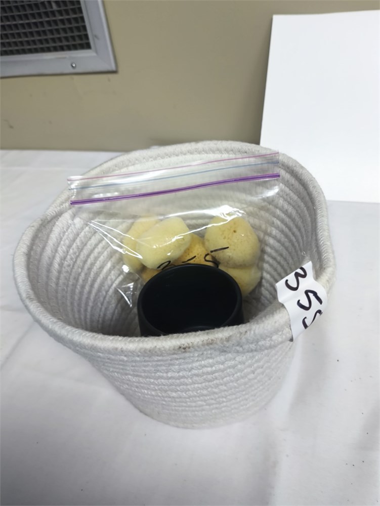 (5) Sponges, Cloth Basket, Coffee Cup, (5) Munkees Keychain Clips