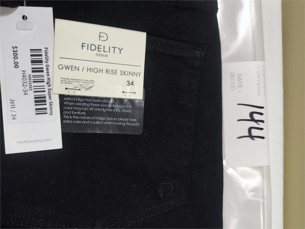 Fidelity Denim Gwen High Rise Skinny Jeans, Size 34