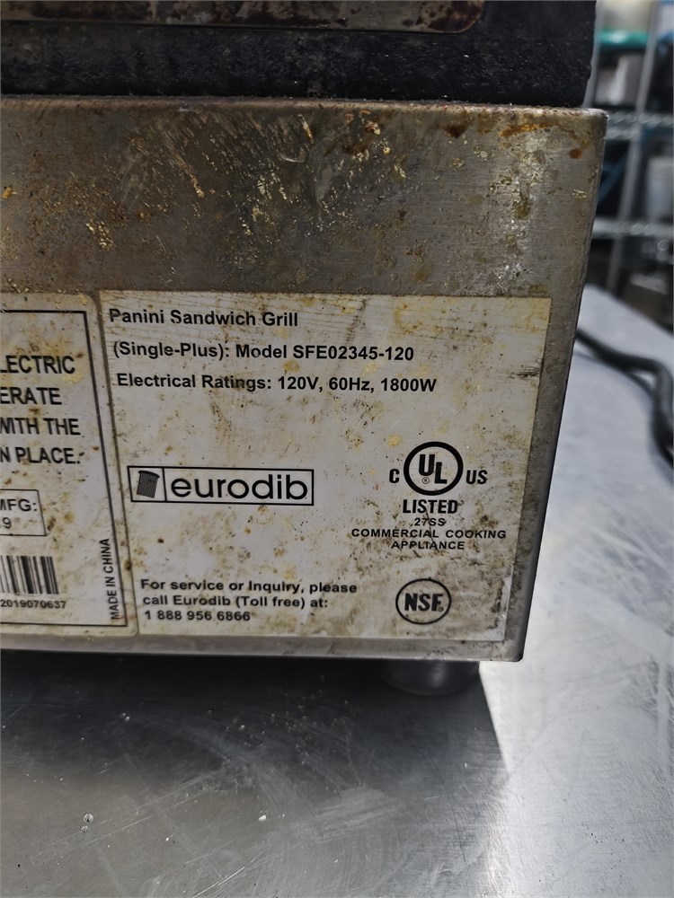 Commercial panini sandwich grill manufactured by Eurodib.