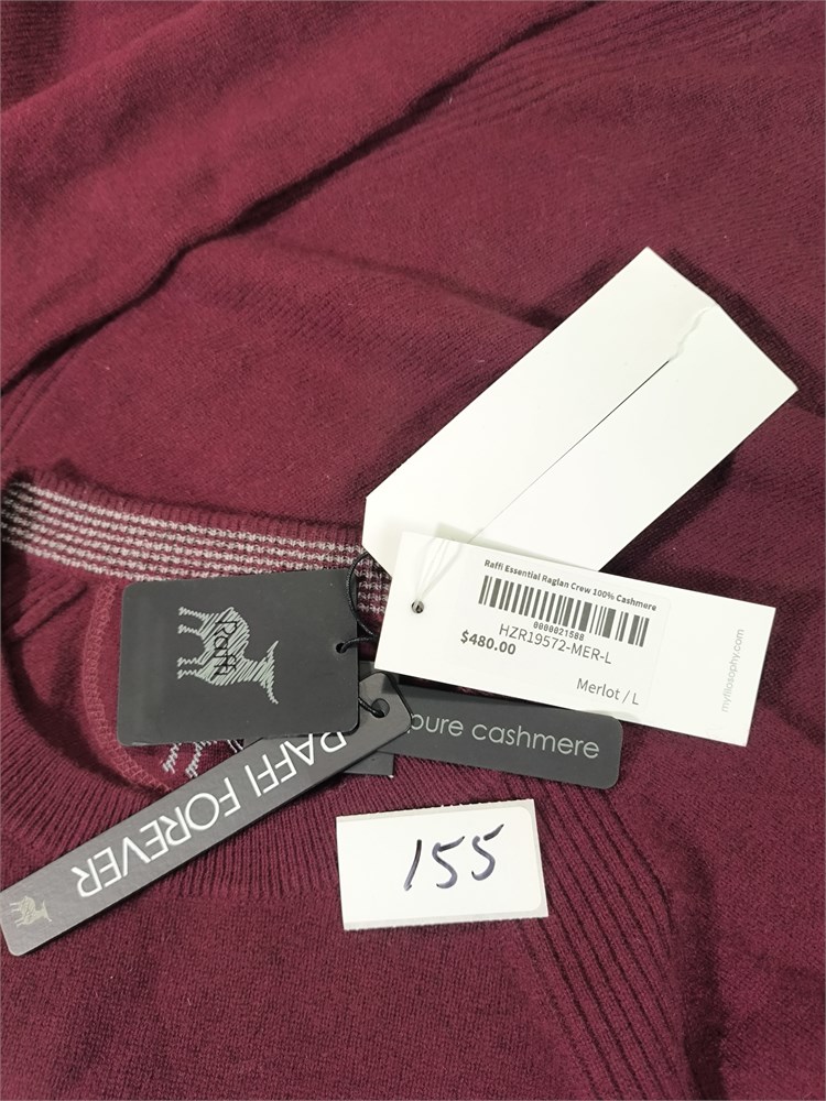 Raffi Essential Raglan Crew 100% Cashmere, Size L