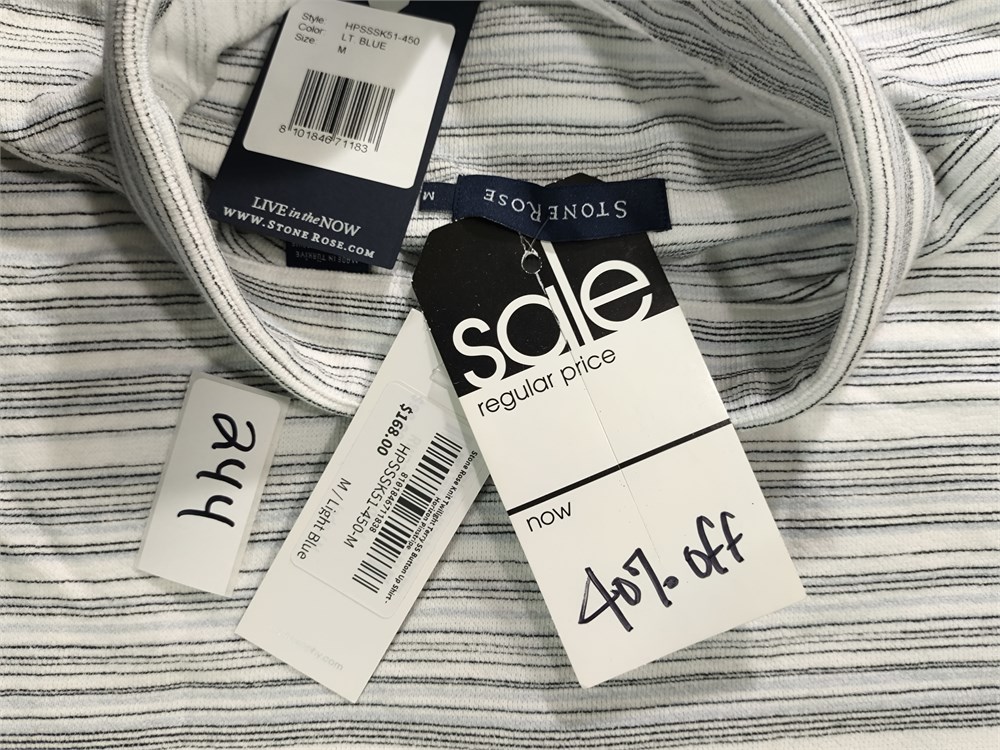 Stone Rose Knit Twilight Terry SS Button Up Shirt Horizon Pinstripe, Size M