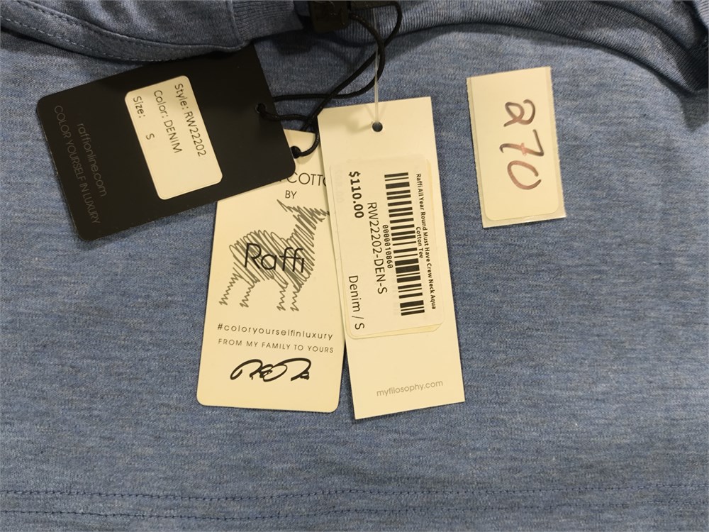 Raffi All Year Round Must Have Crew Neck Aqua Cotton Tee, Size S