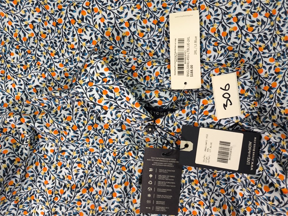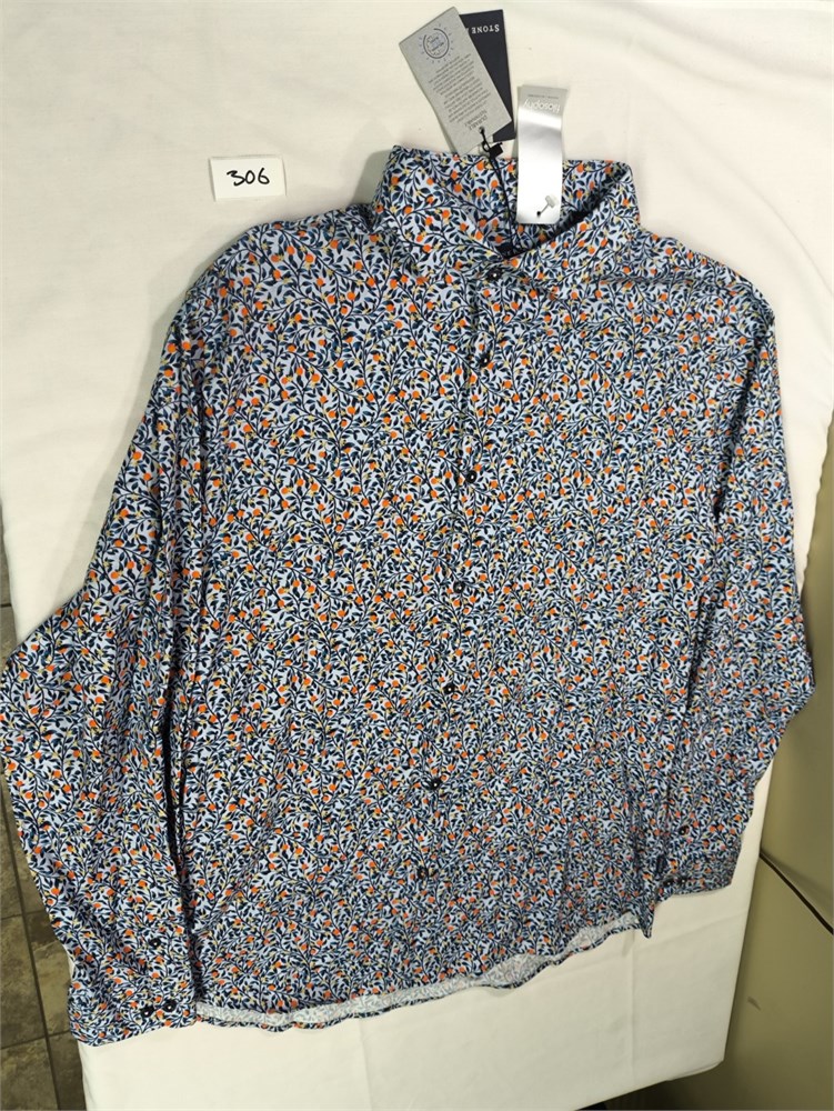 Stone Rose Printed Orange Trees Button Up Long Sleeve Shirt, Size XXL