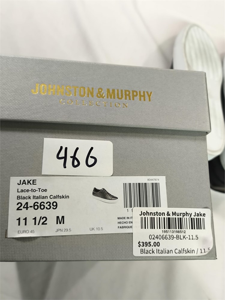 Johnston & Murphy Jake Lace-to-Toe Black Italian Calfskin Size 45 Euro