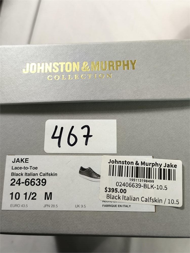 Johnston & Murphy Jake Lace-to-Toe Black Italian Calfskin Size 43.5 Euro
