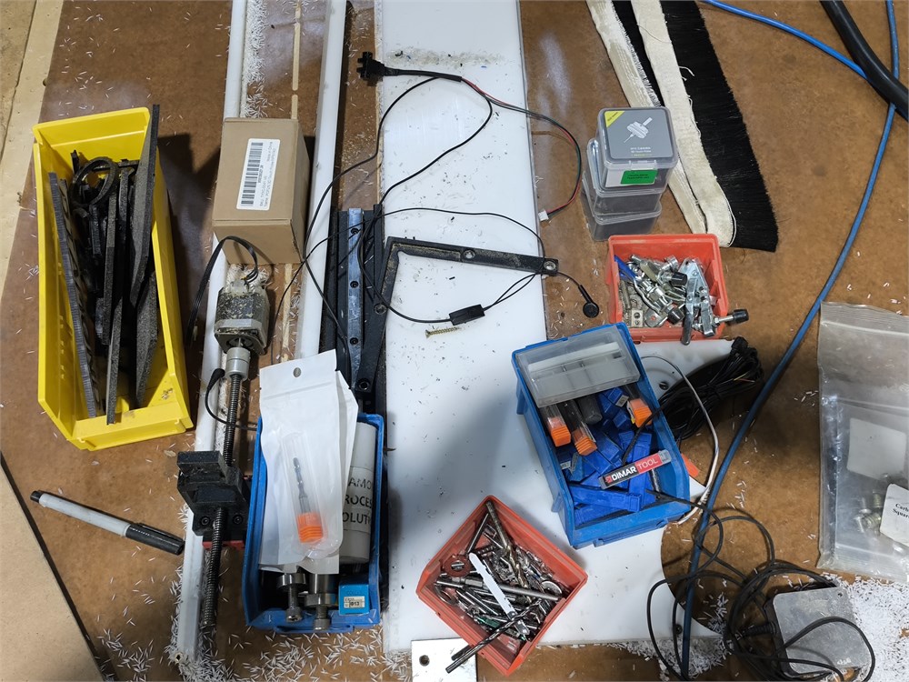 Workbench; (2) HP 24ES Monitors: Dust Collector Power First 8120446: Various Bits and details
