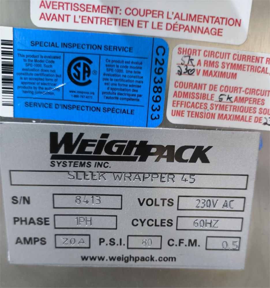 Weighpack Sleek Wrapper 45 with Domino V230i Thermal Transfer (The V230i prints high resolution codes, text and images into flexible foils, films and labels)